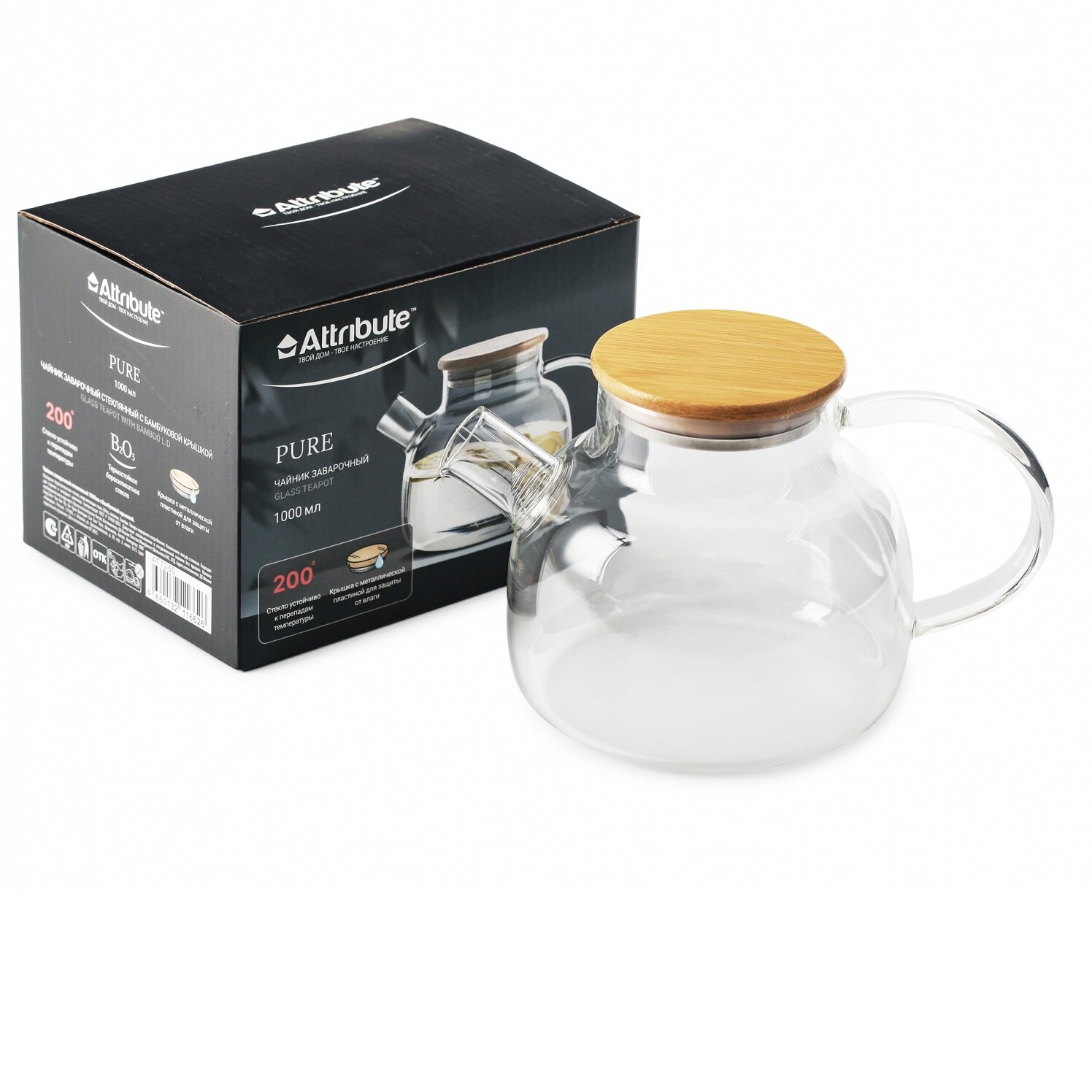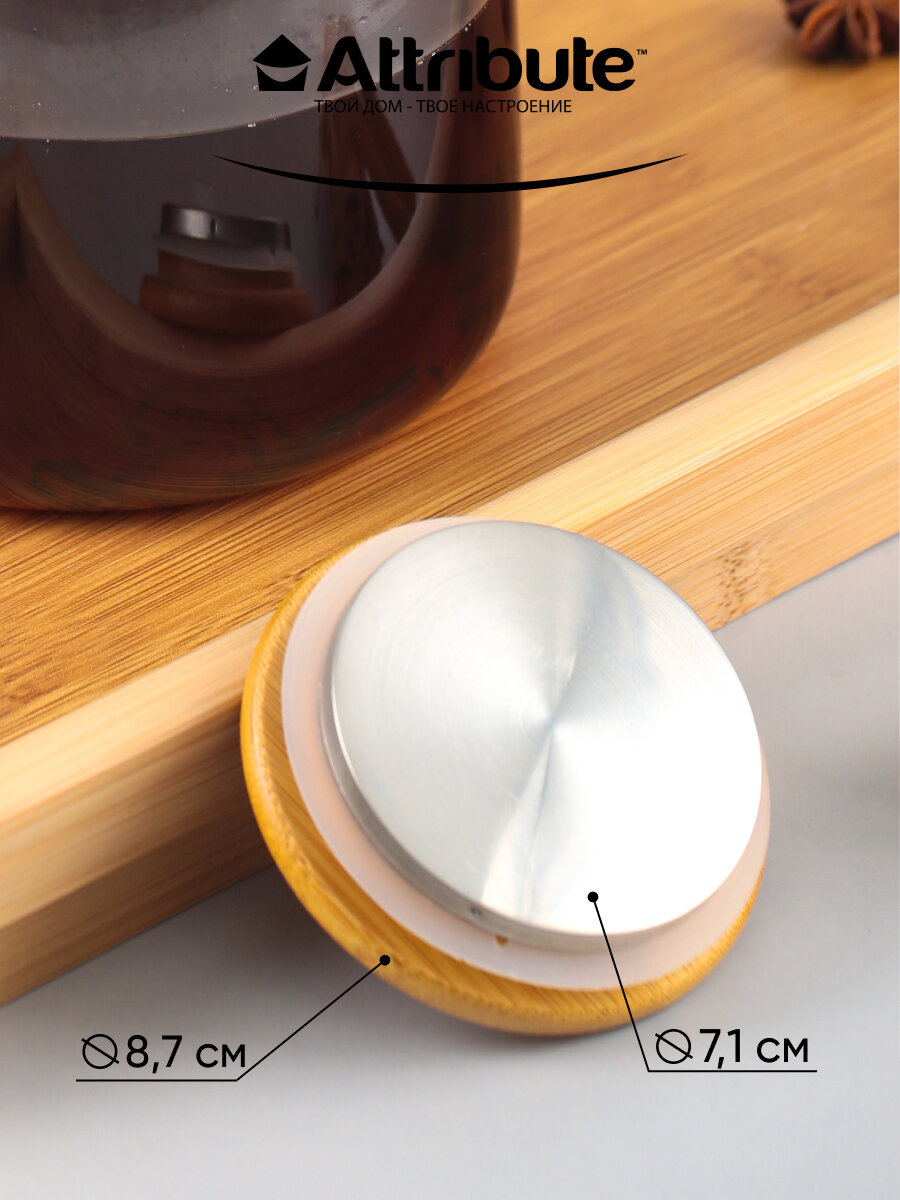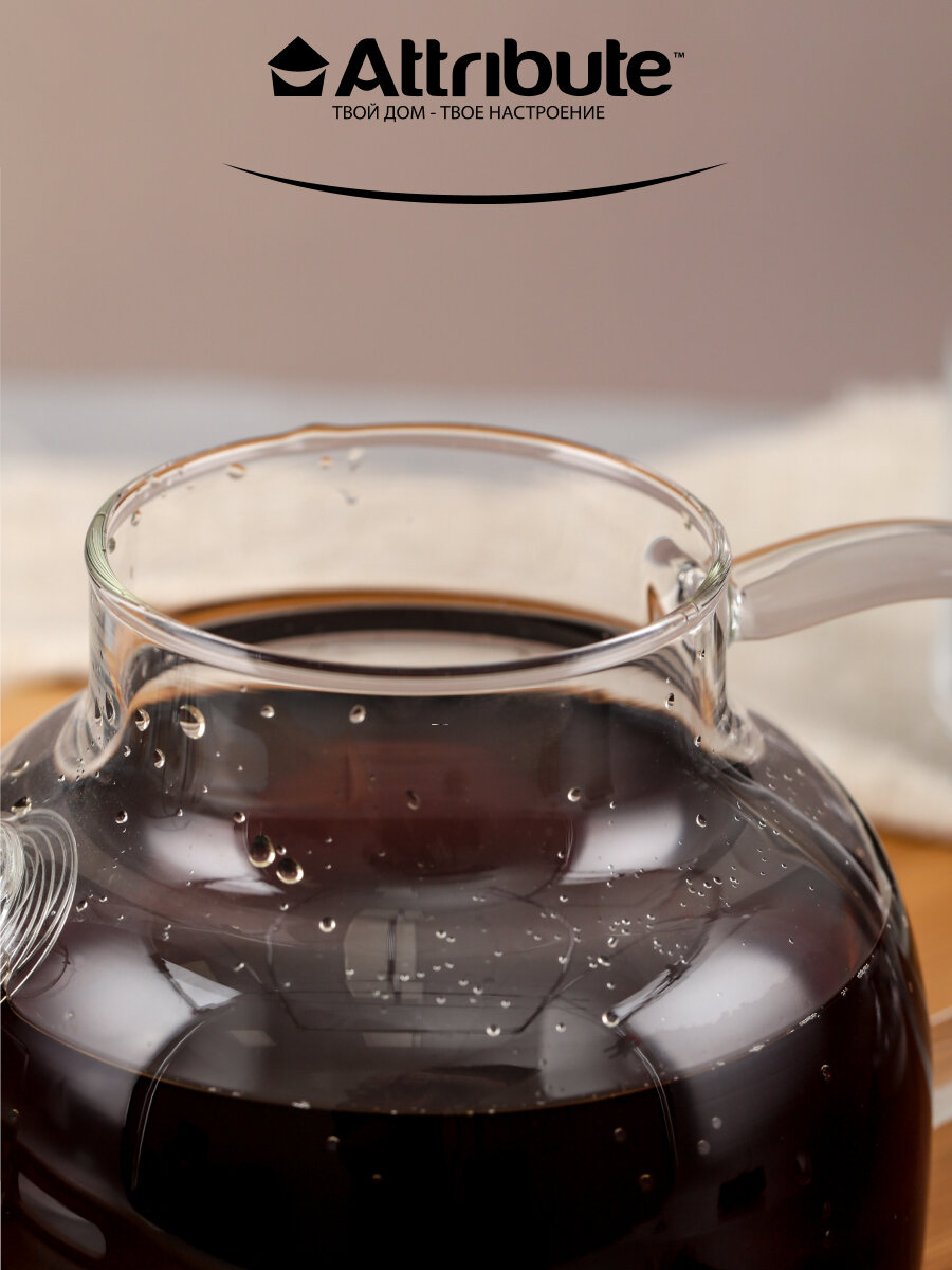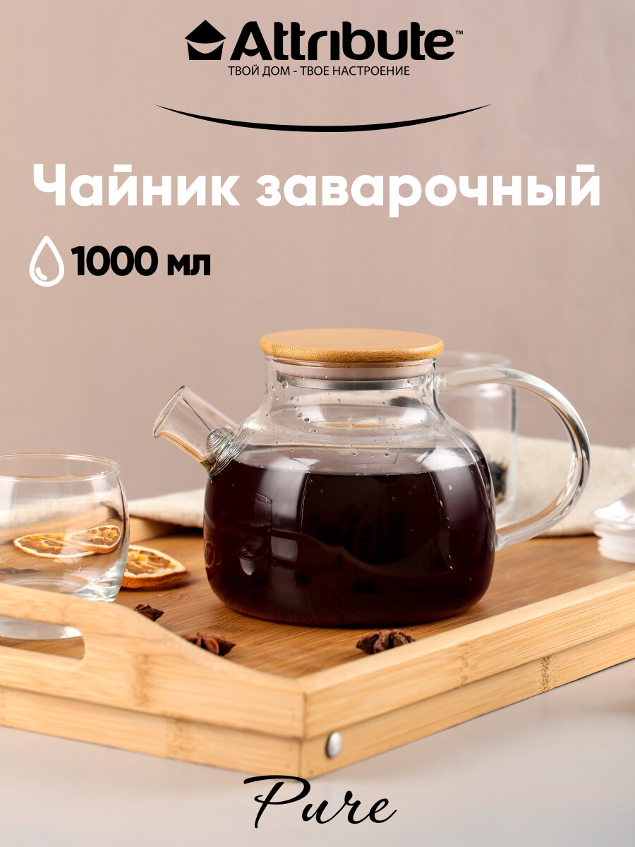 Чайник заварочный attribute pure 1,8л стекло, бамбук, нерж.сталь