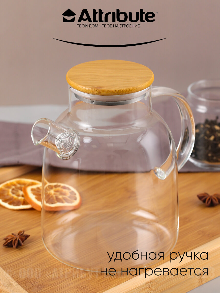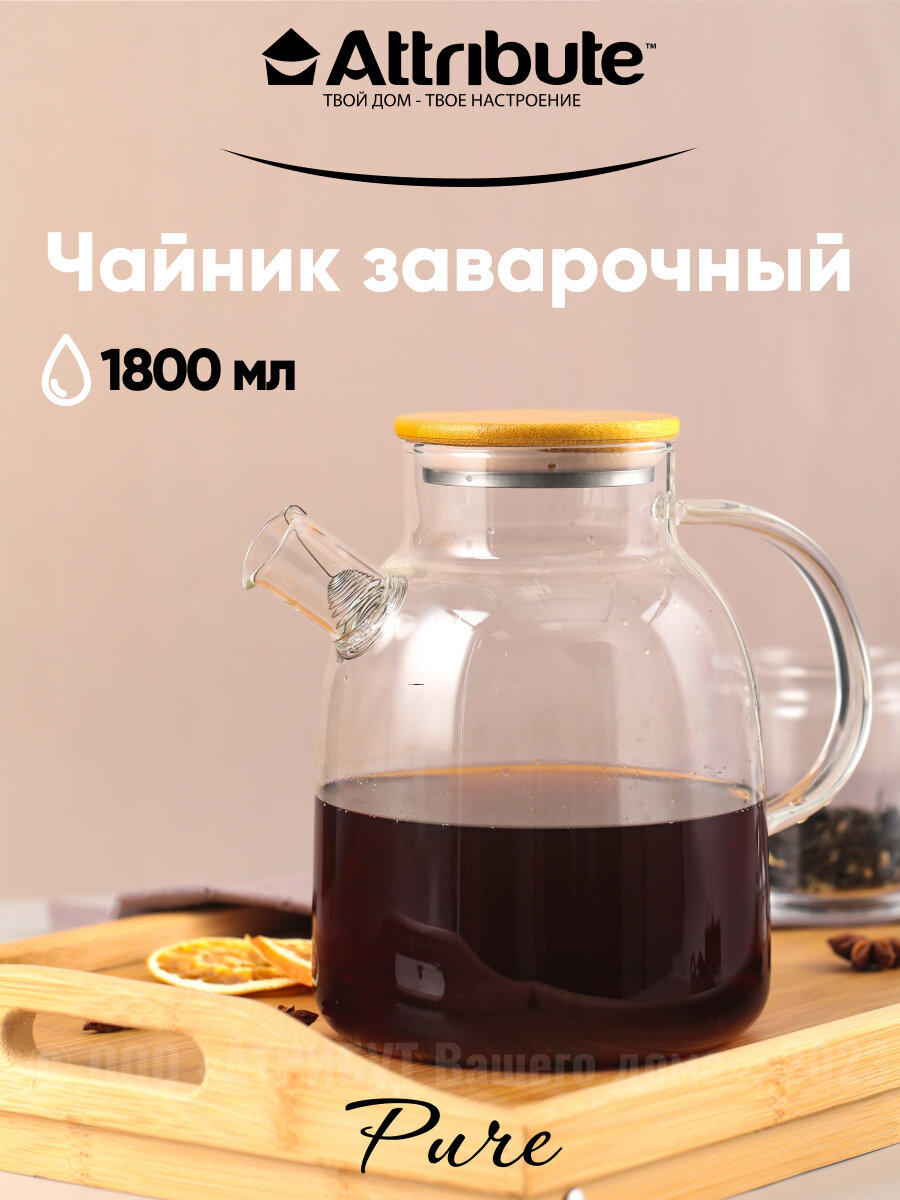 Чайник заварочный attribute pure 1,8л стекло, бамбук, нерж.сталь интересное:
