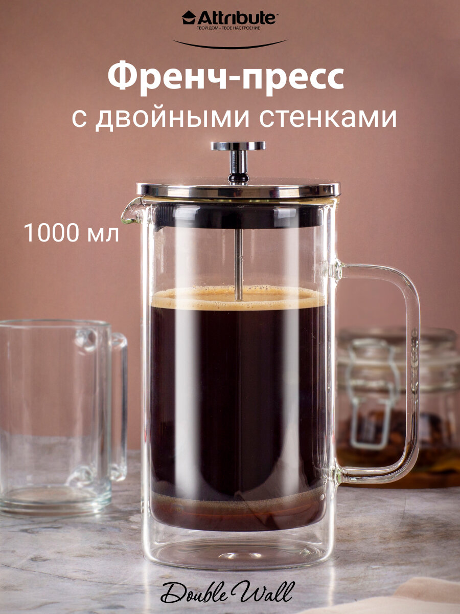Френч-пресс Attribute DOUBLE WALL 1000мл+аксессуары (ATF300)