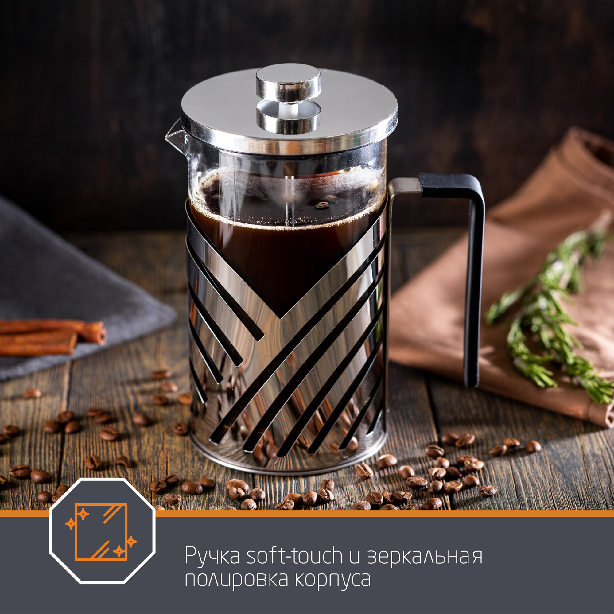 Френч-пресс, GENUSS, объем 800 мл, ручка soft-touch (104767) интересное: