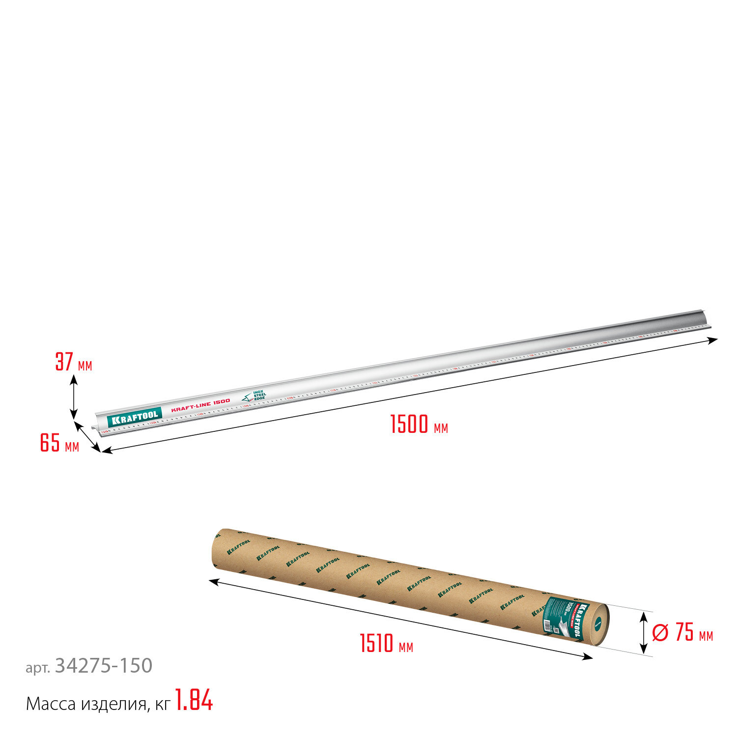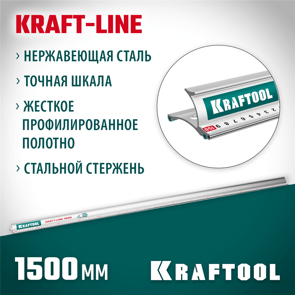 KRAFTOOL KRAFT-LINE, 1.5 м, усиленная алюминиевая линейка со стальной направляющей (34275-150) интересное: