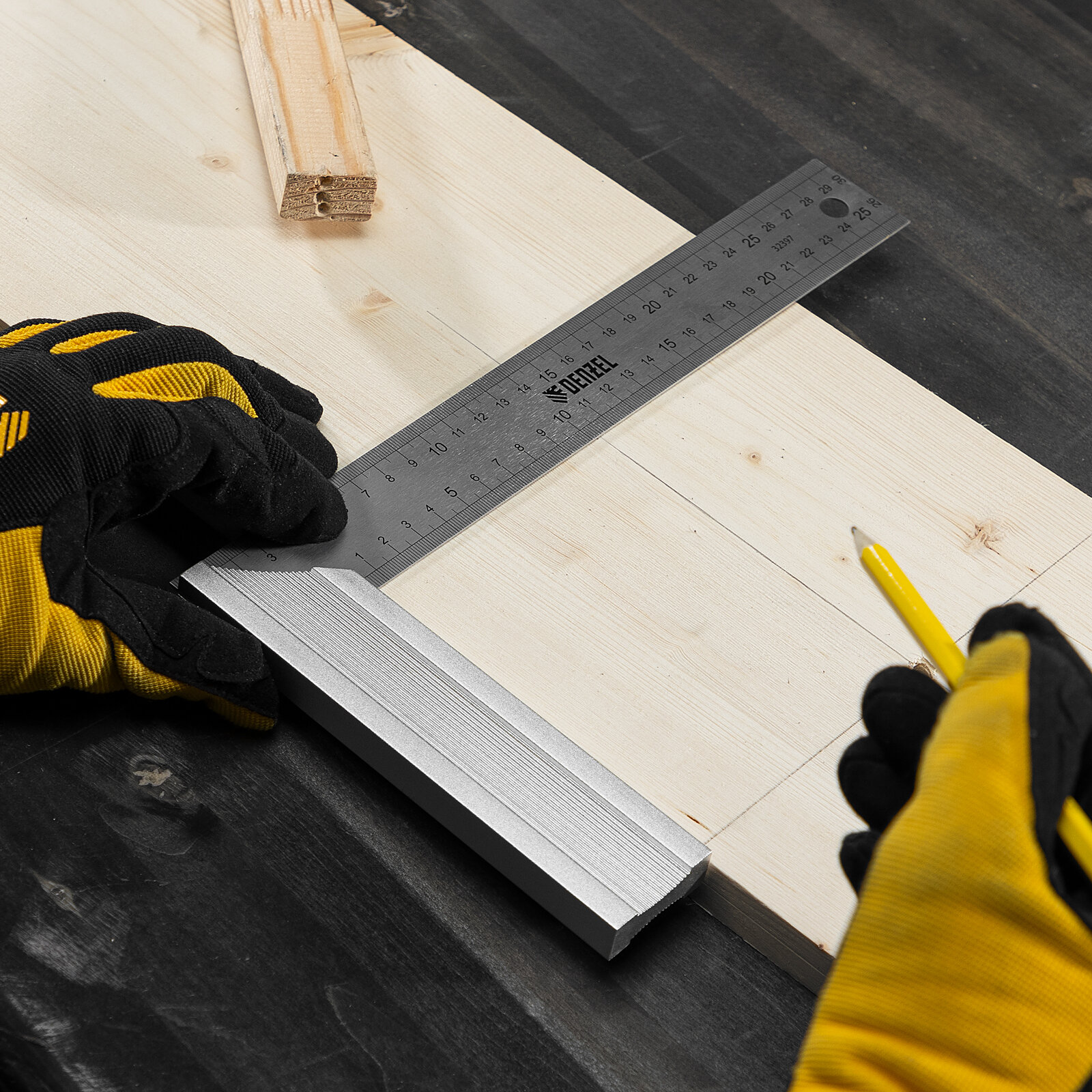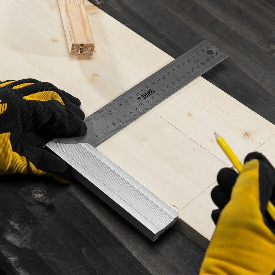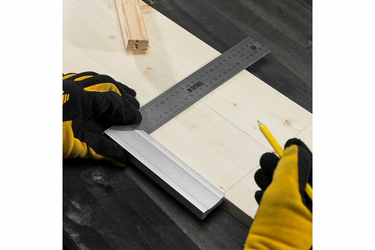 Угольник стальной, нержавеющая сталь, градуировка, алюминиевое основание, 250 мм// Denzel 32396 . интересное: