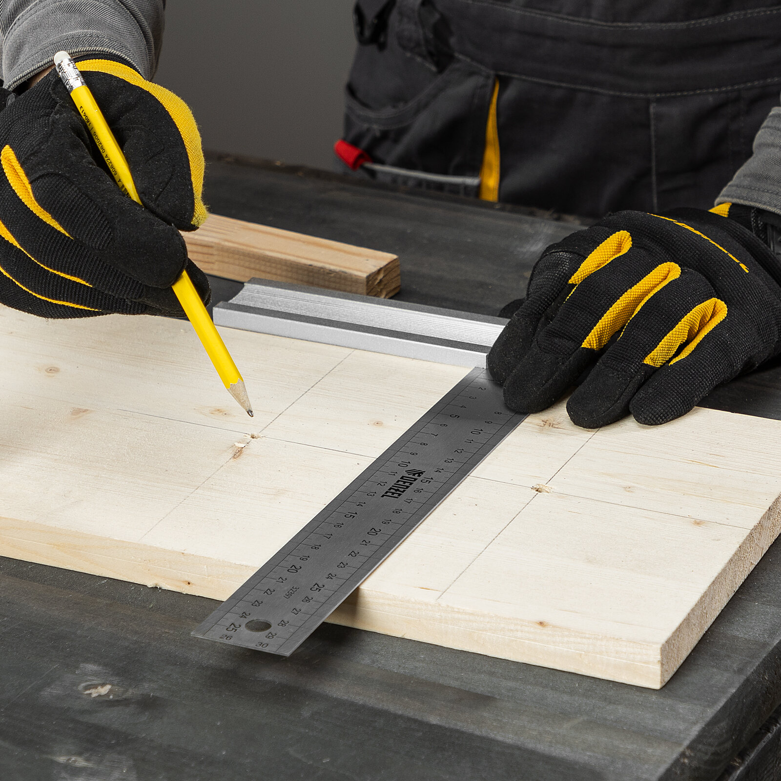 Угольник стальной, нержавеющая сталь, градуировка, алюминиевое основание, 300 мм Denzel