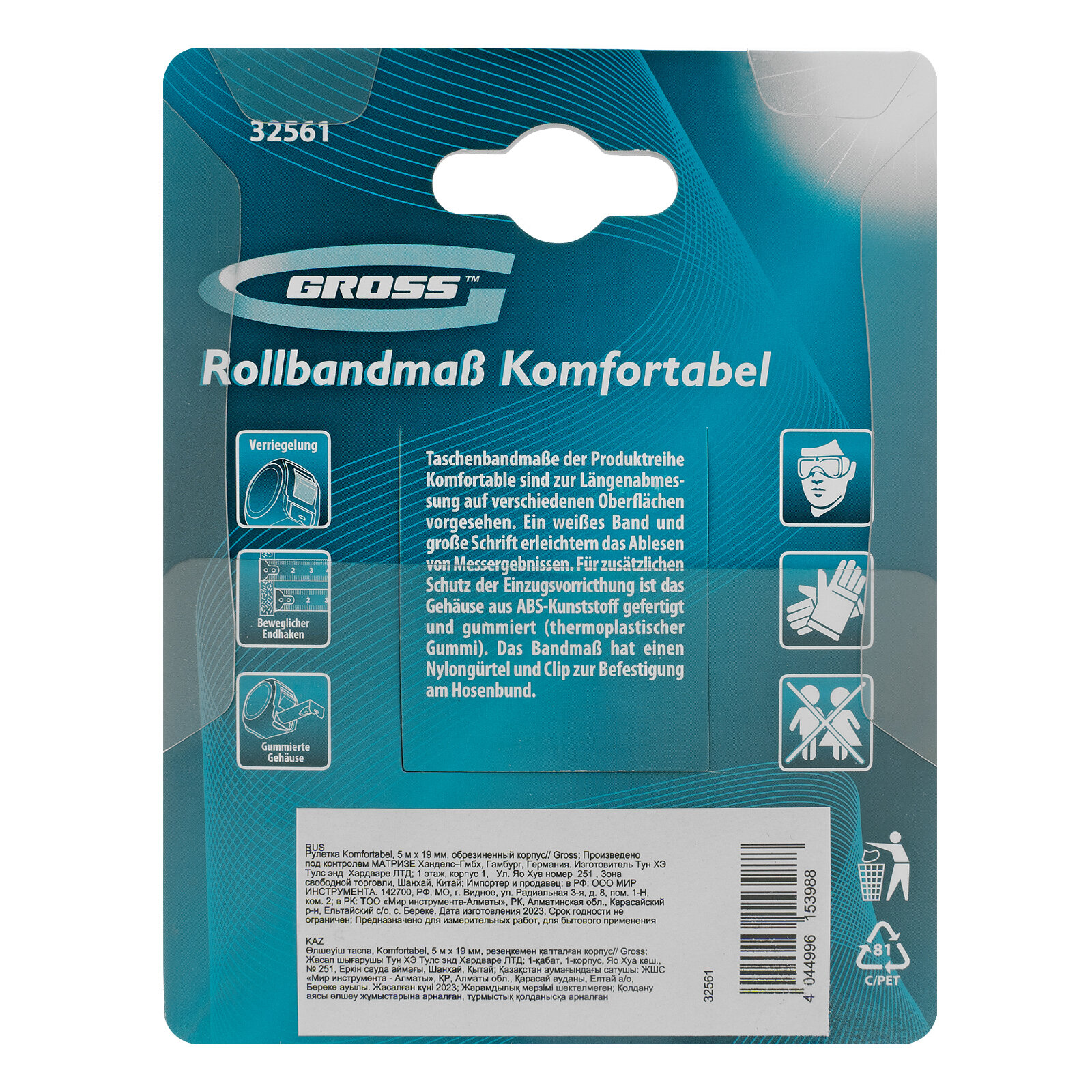 Рулетка Gross Komfortabel 5 м х 19 мм, обрезиненный корпус 32561