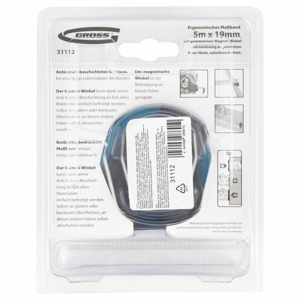 Рулетка Schlagfest 3мх19мм, магнитный обрезиненный зацеп Gross