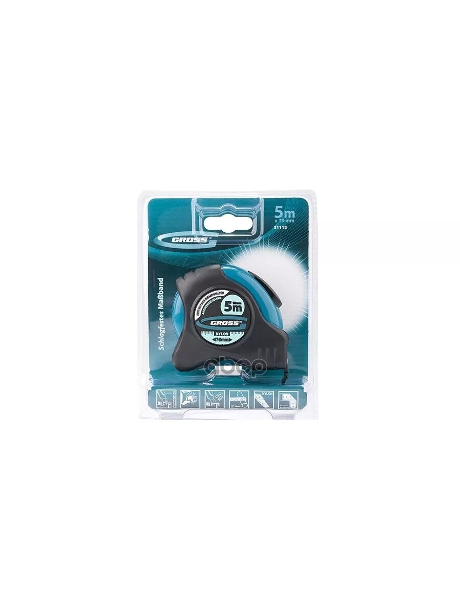 Купить Рулетка "Schlagfest",5 м x 19 мм,магнитный обрезиненный зацеп,двусторонняя шкала,Нейлоновое покрытие,автоматическая фиксация Gross