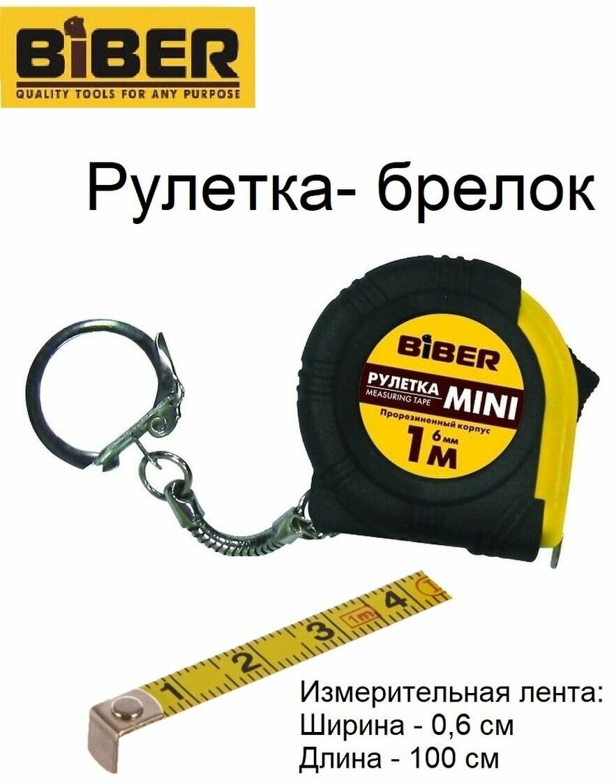 Рулетка мини брелок BIBER, 1мх6мм