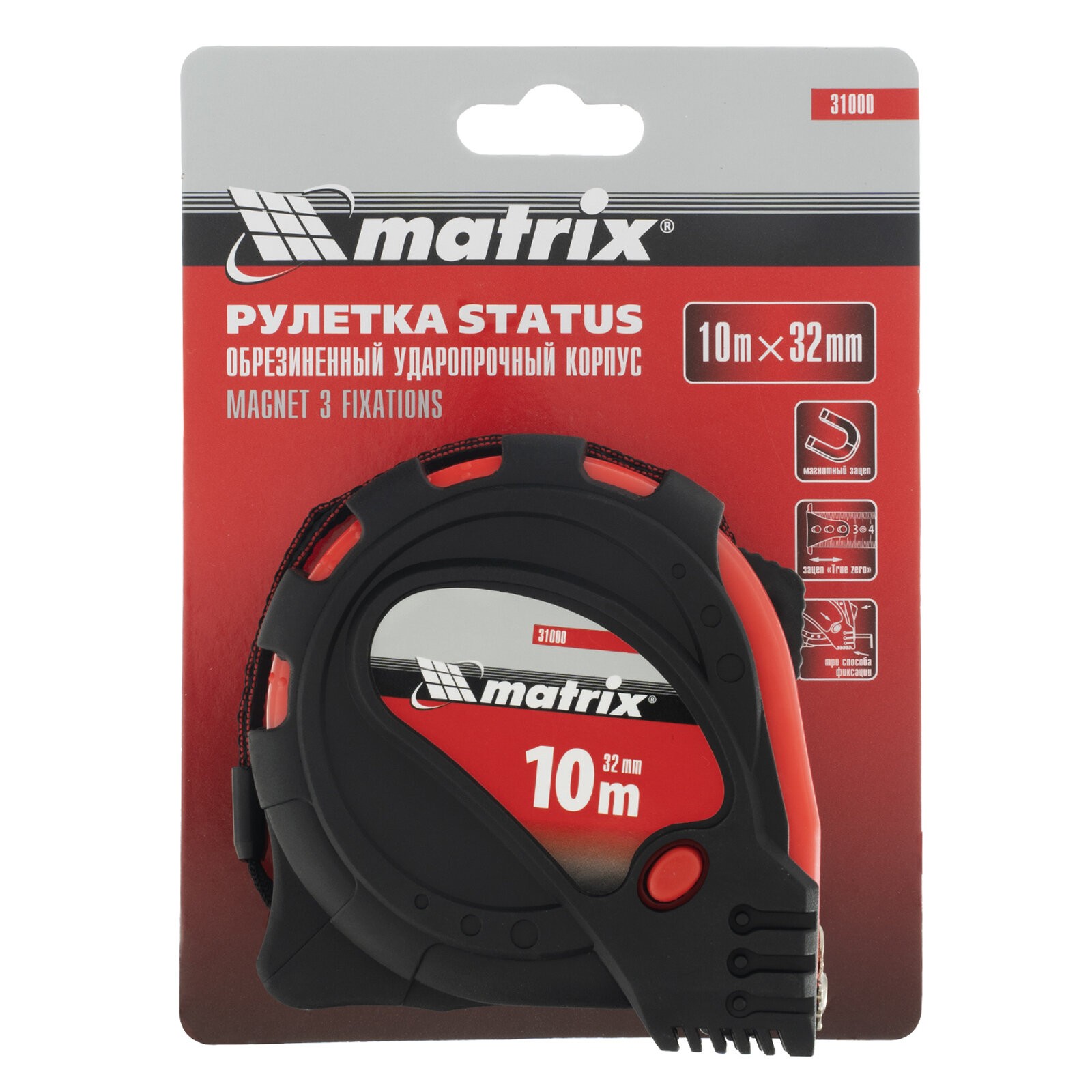 Купить Рулетка Status Magnet 3 fixations,10 м х 32 мм,обрезиненный корпус,зацеп с магнитом Matrix