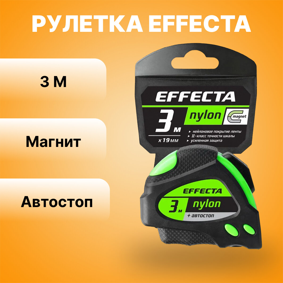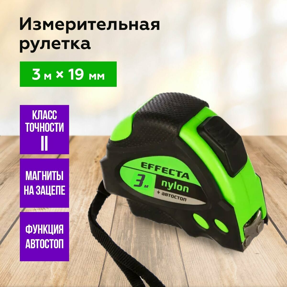 Рулетка 3м / 19мм с магнитом, автостопом, лентой нейлон EFFECTA Nylon