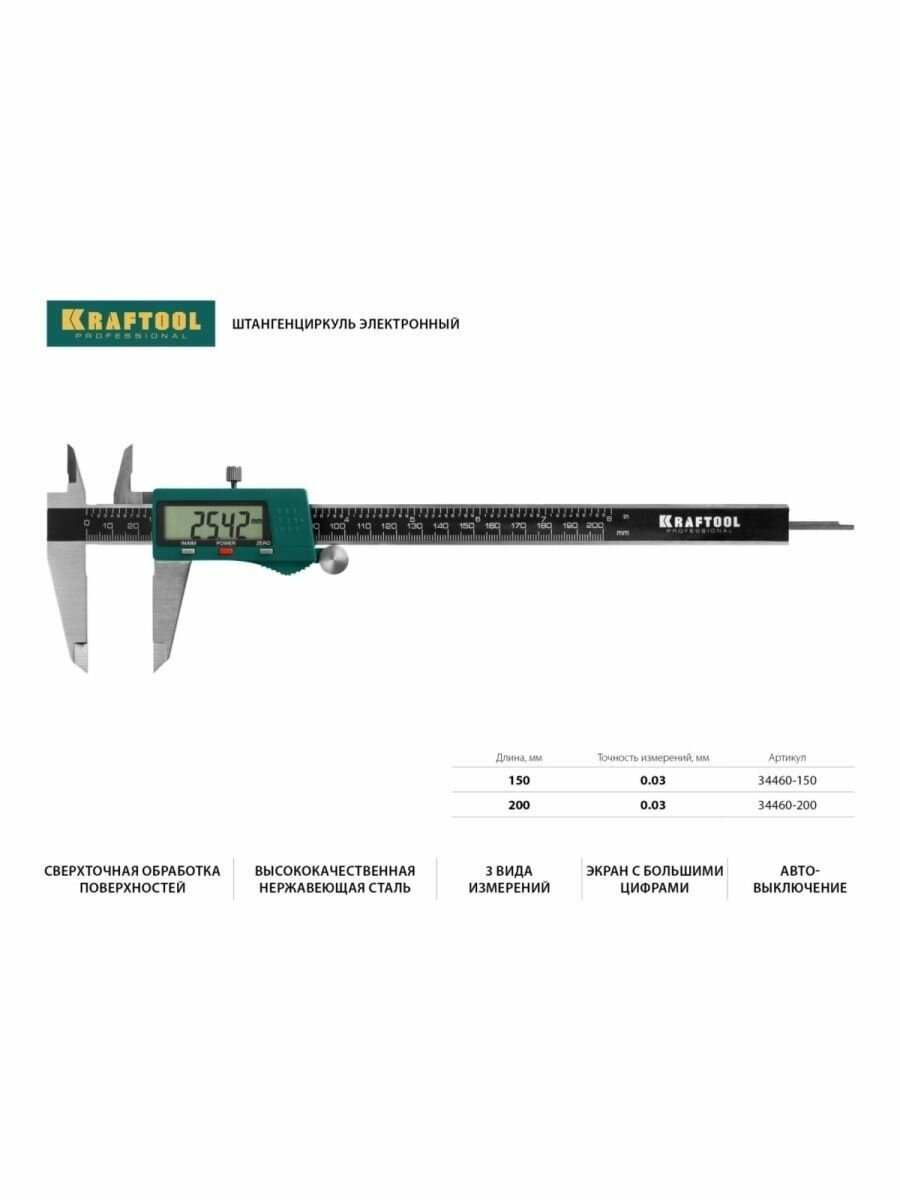Купить KRAFTOOL 200 мм, высокоточный, металлический электронный штангенциркуль (34460-200)