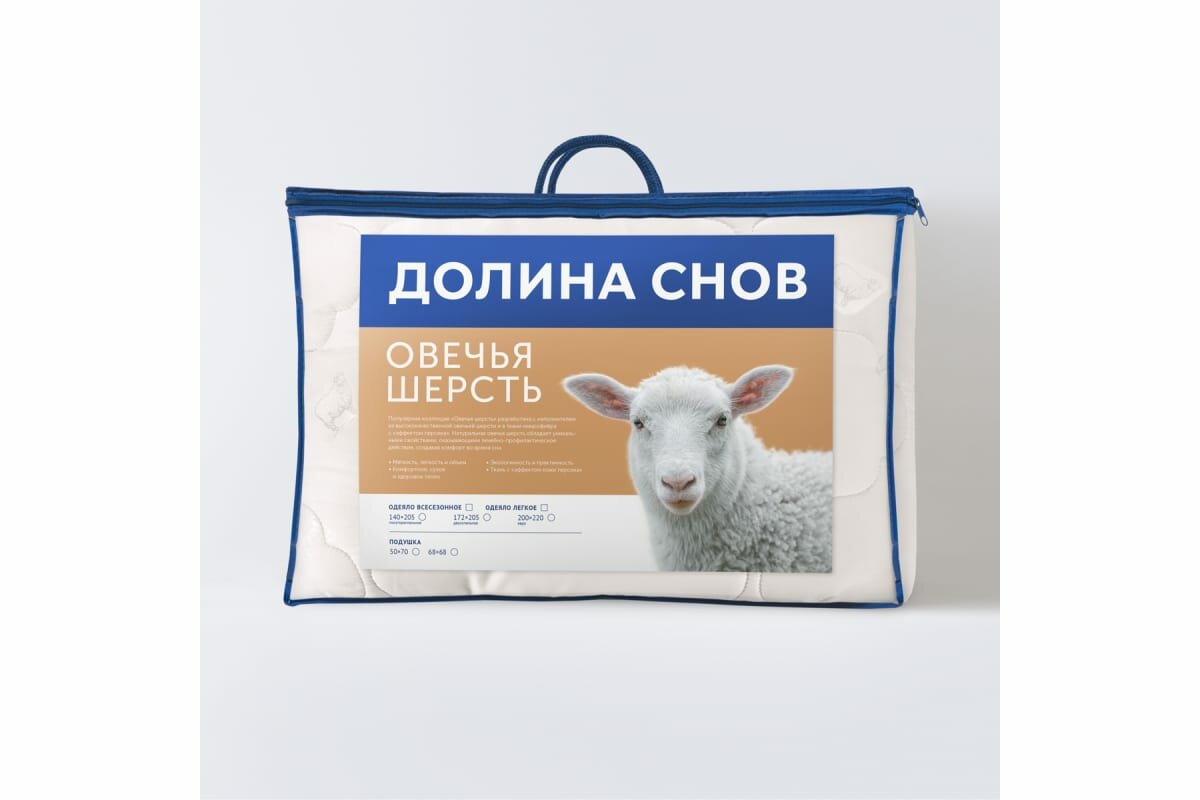Одеяло овечья шерсть 2-спальное (172х205 см) Долина снов "Овечья шерсть", чехол - микрофибра (100% п/э), Ecotex