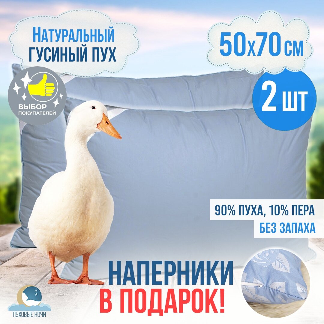 Купить Комплект подушек 2 шт. 50x70, 100% натуральный гусиный ПУХ 1 категории, для СНА, хлопковый наперник