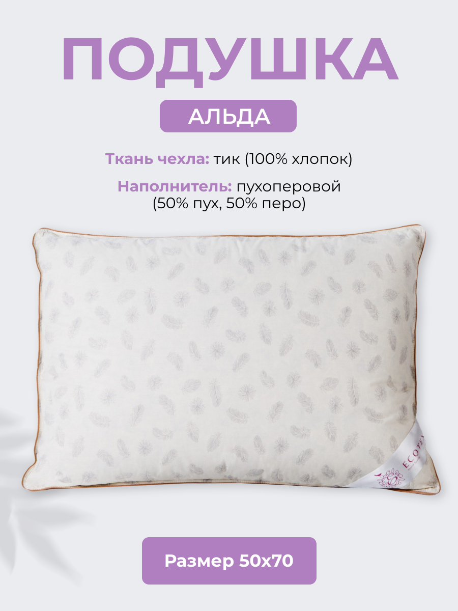 Подушка 50х70 см пух/перо Долина снов "Альда", чехол -тик (100% хлопок), Ecotex интересное: