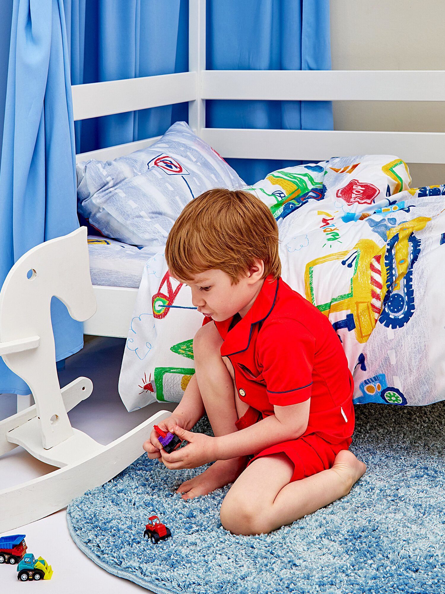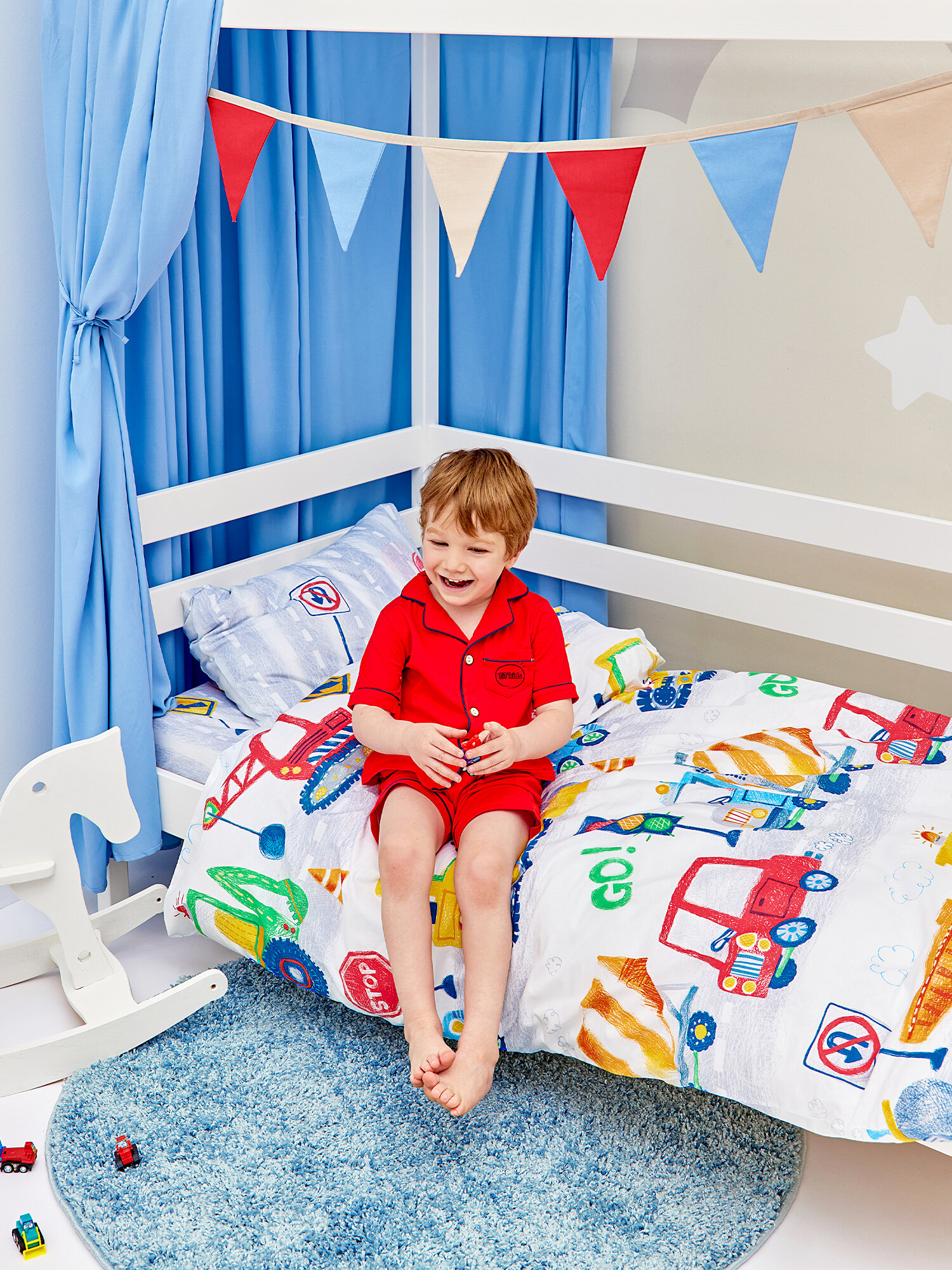 Постельное белье детское 160х80 Juno, поплин хлопок, 1 наволочка 40х60, детское постельное белье в кроватку Пожарные машинки, комплект для мальчика