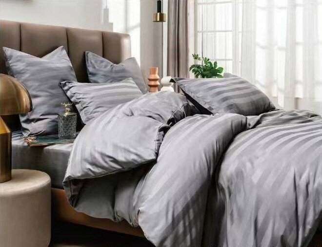 Постельное белье евростандарт двуспальное/ евро/ BorisMency/ Страйп сатин / простыня 180x200+25/пододеяльник 200x220 / 4 Наволочки 50x70-2, 70x70-2