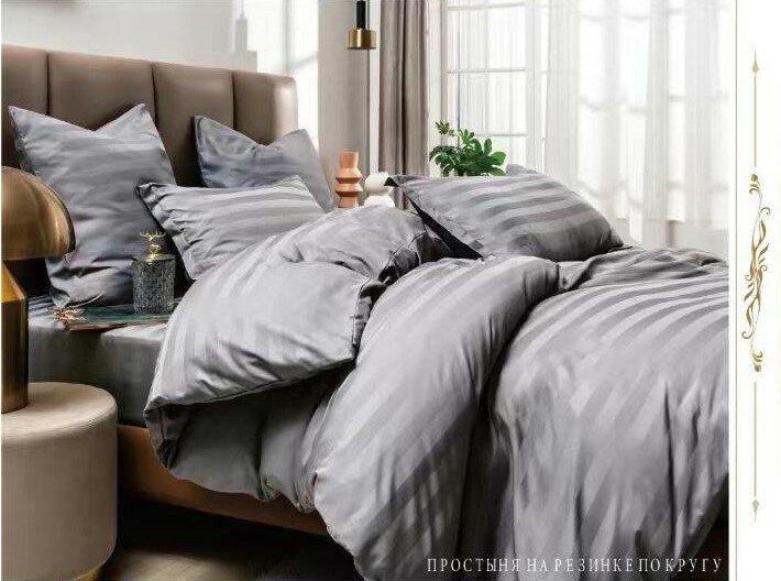 СохранитьПостельное белье евро двуспальное серый BorisMency страйп сатин простынь на резинке 180x200+25, пододеяльник 200x220, наволочки 50x70-2, 70x70-2 интересное: