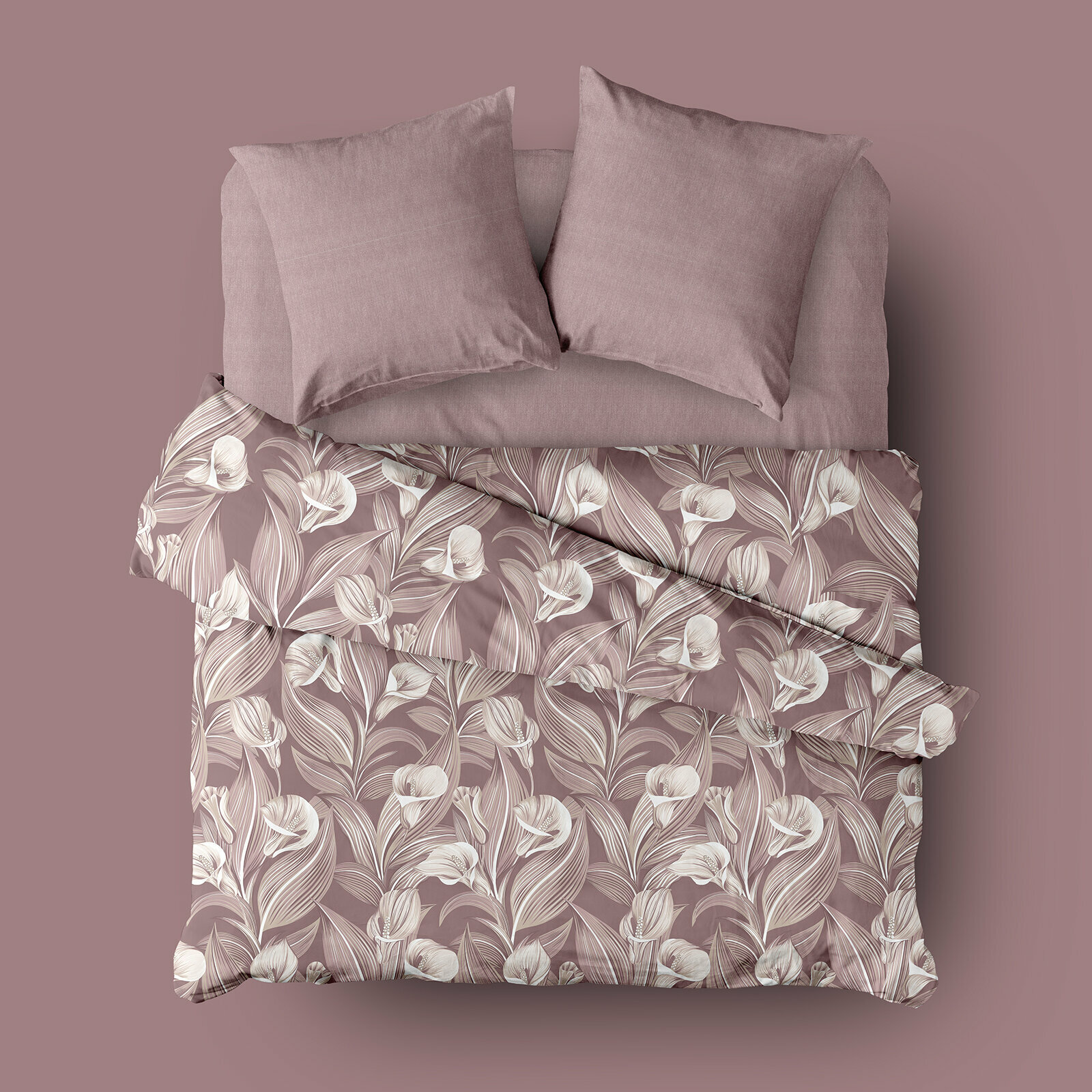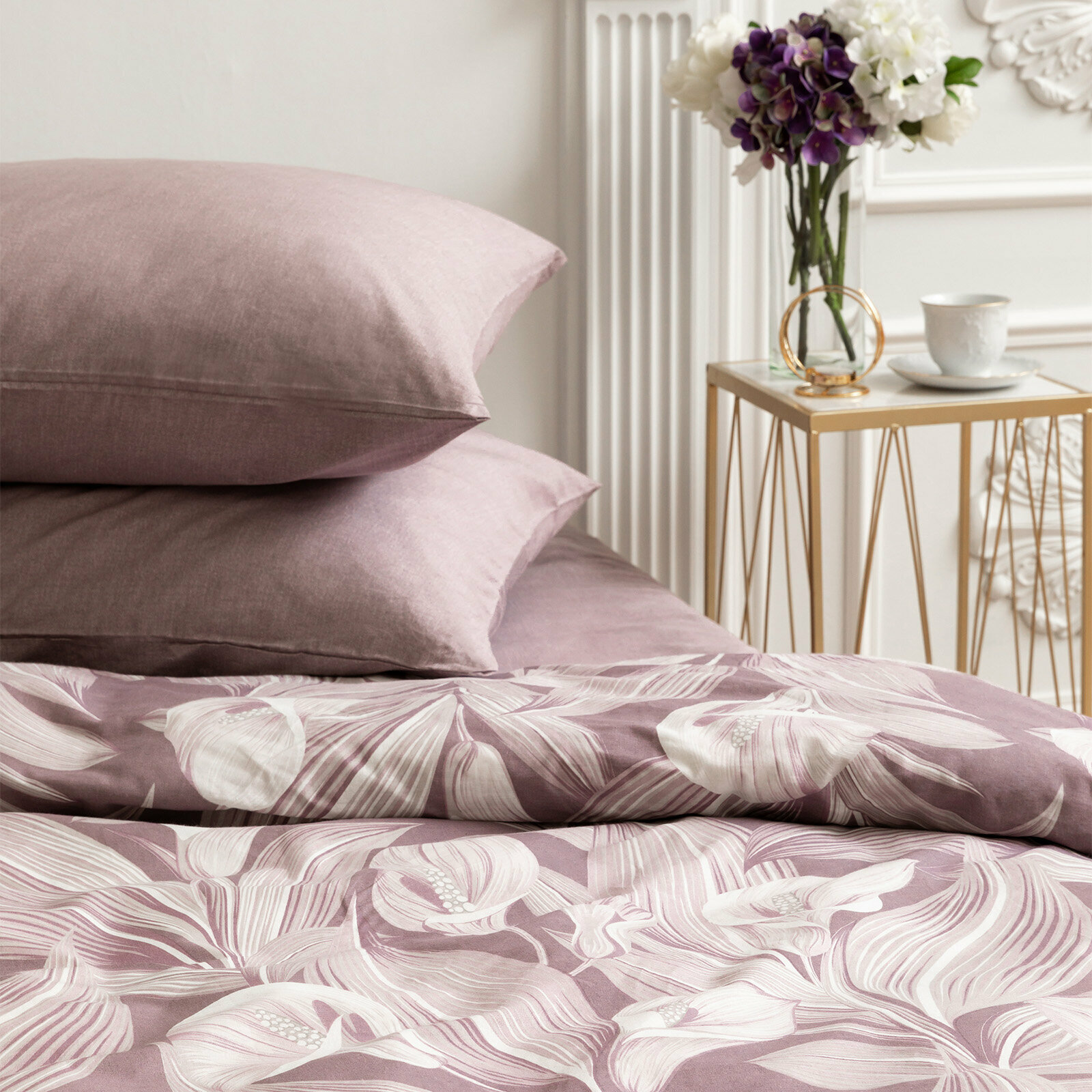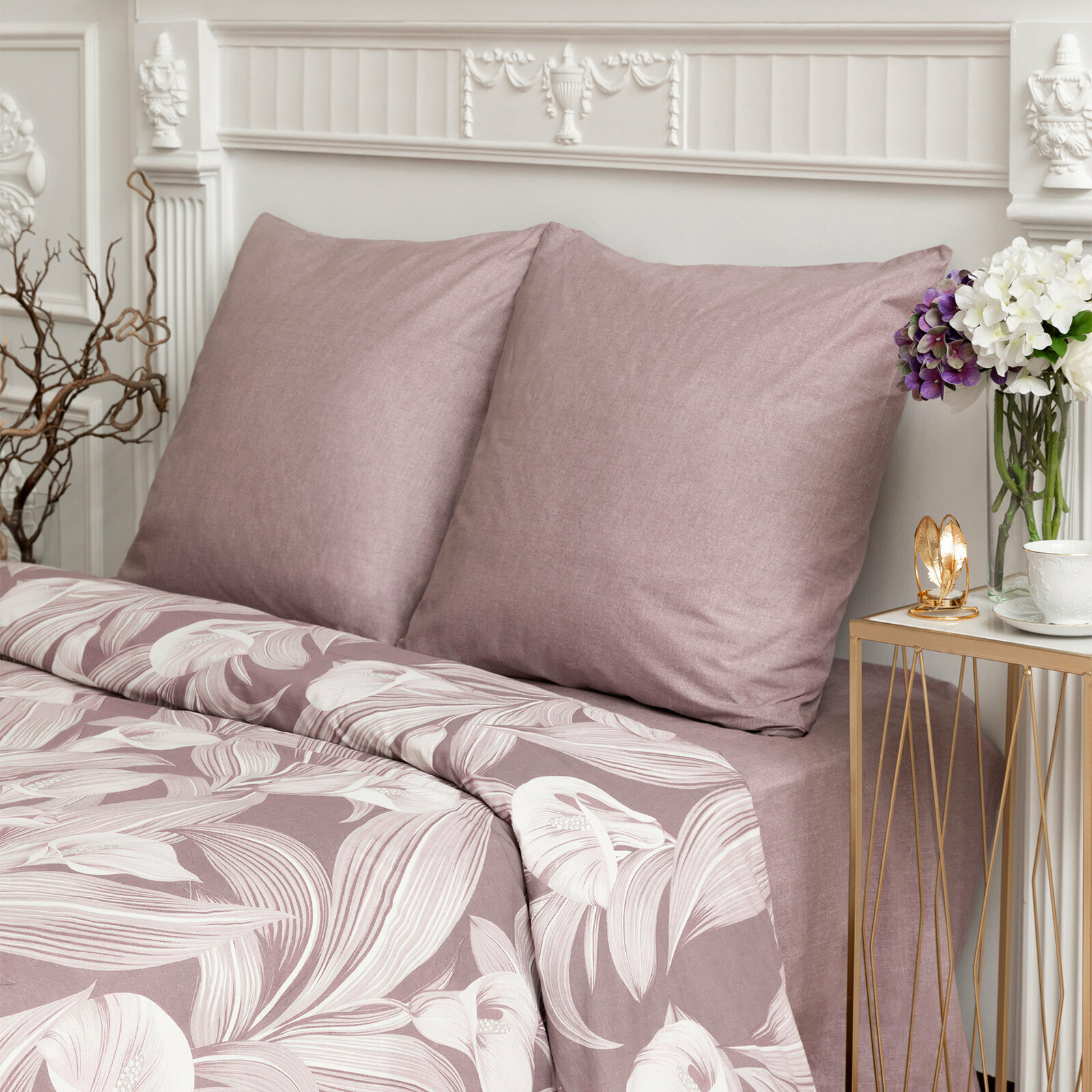 Постельное белье Евро Mia Cara, Перкаль, нав. 50х70, Таинственный сад, темно-фиолетовый