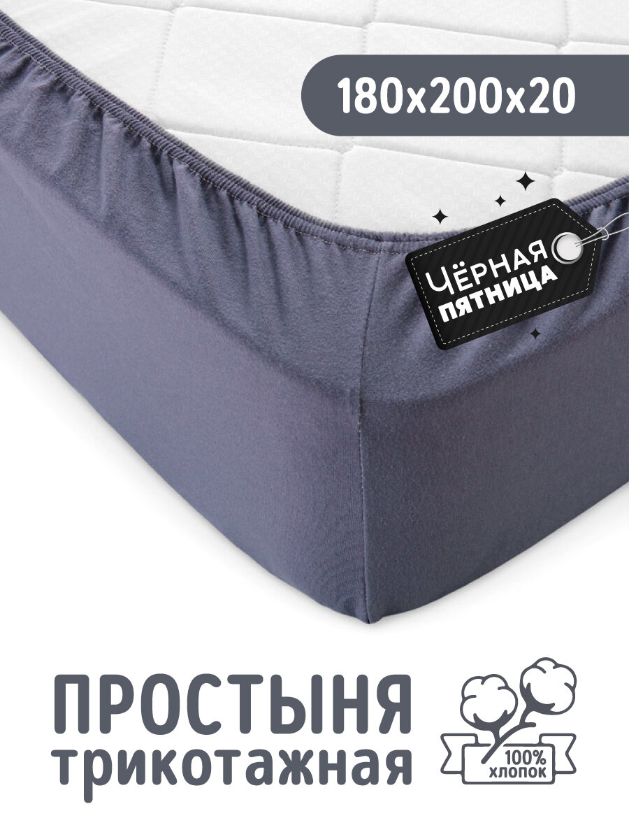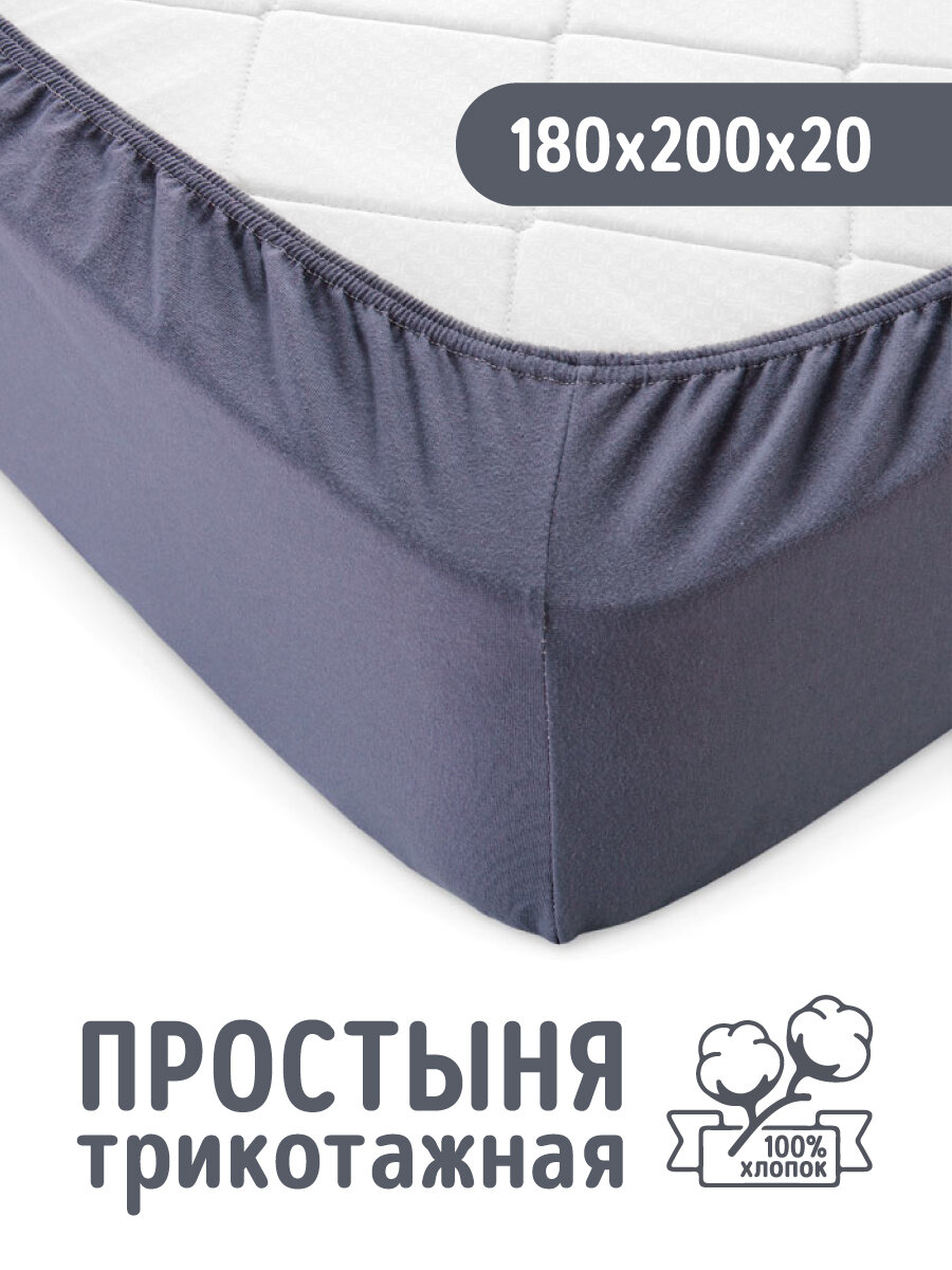 Купить Трикотажная простынь на резинке 180х200 Графит, 100% хлопок
