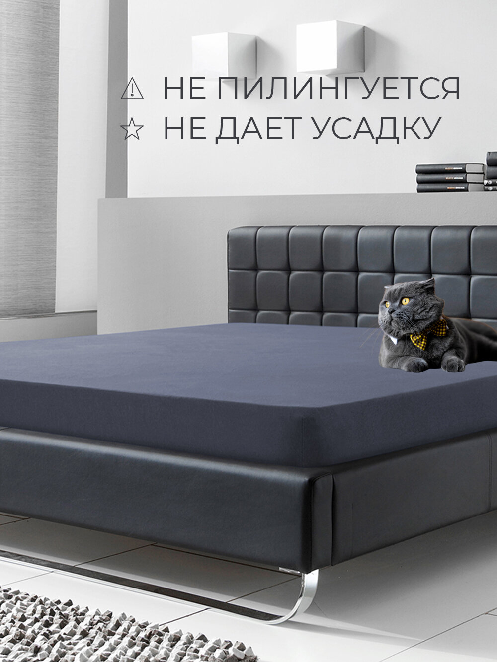СохранитьТрикотажная простынь на резинке 180х200 Графит, 100% хлопок интересное:
