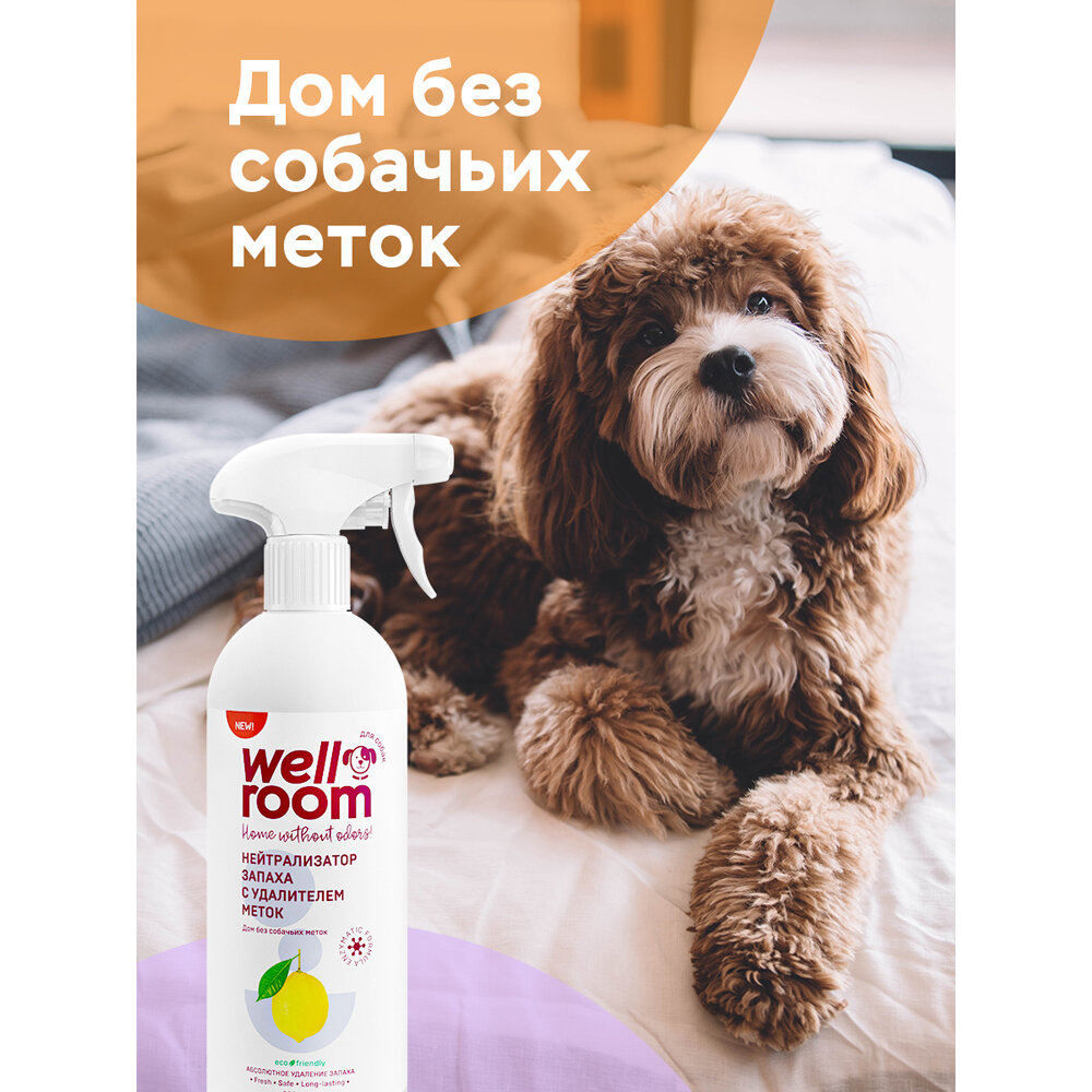 Нейтрализатор запаха собачьей мочи, меток (для собак), нейтрализация запахов Wellroom цитрус, 500 мл интересное: