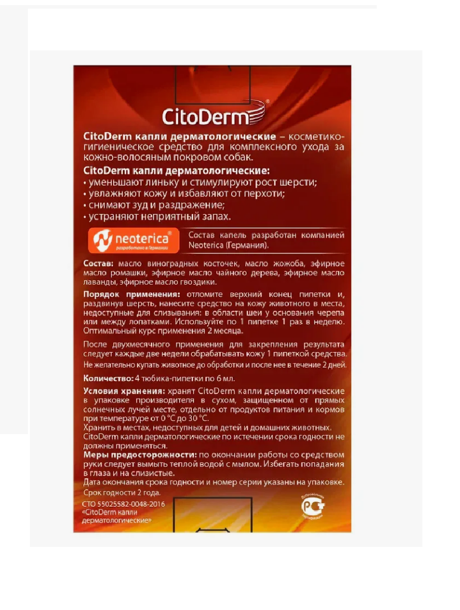 Цитодерм Капли дерматологические собак 3 мл 4 пипетки, упаковка