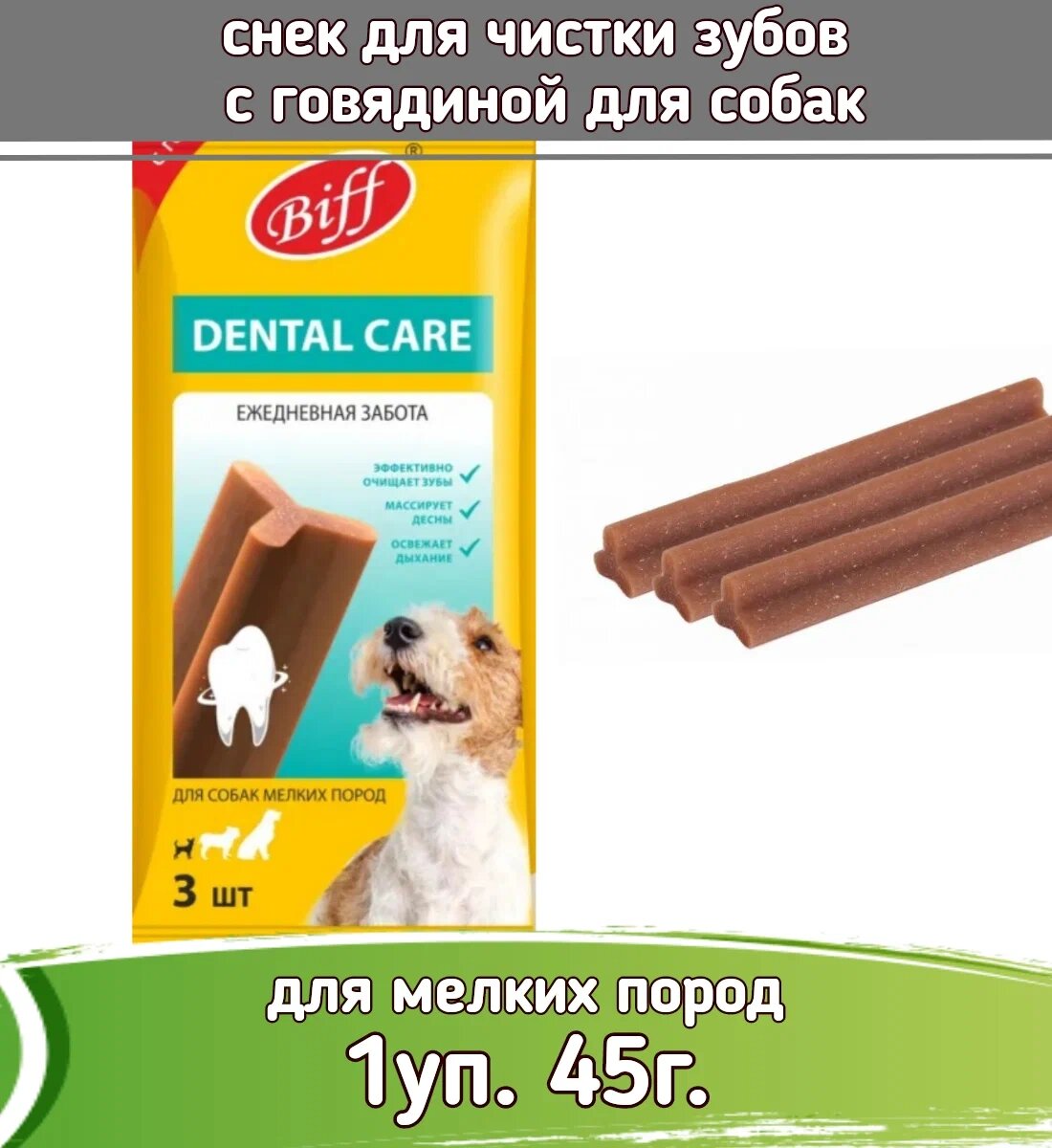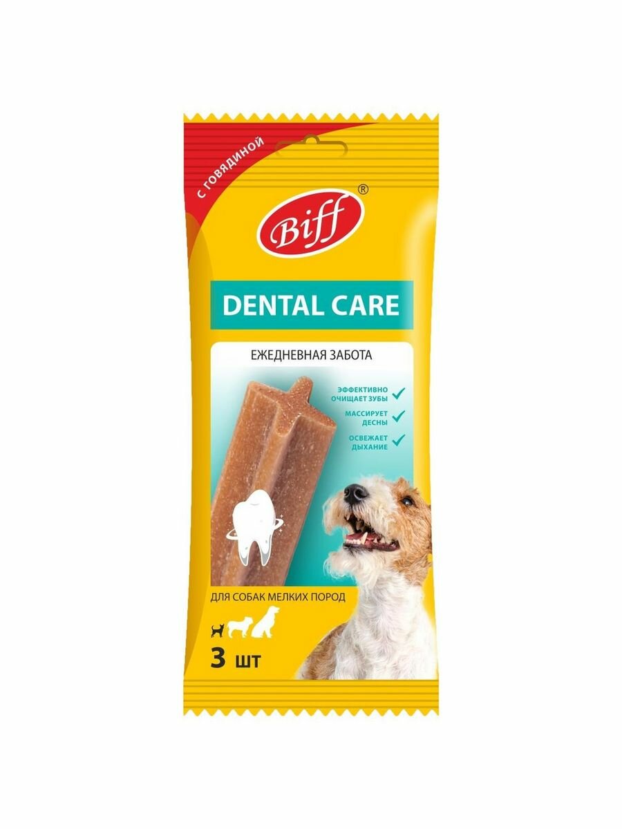 Купить Лакомство для собак мелких пород Biff Dental Care, Жевательный снек для чистки зубов со вкусом говядины, 45г.