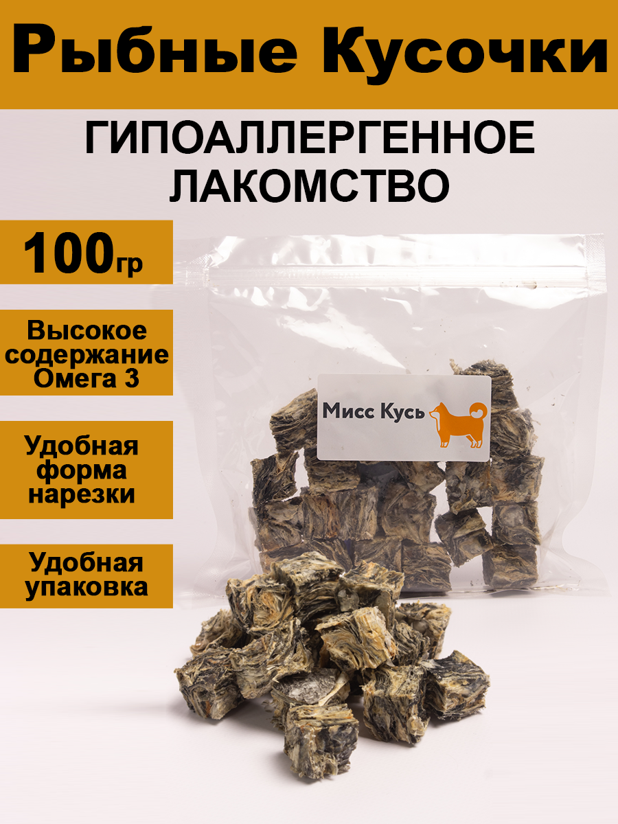 Лакомство для собак. Мисс Кусь. Рыбные кубики. Треска натуральная. 100 грамм. интересное: