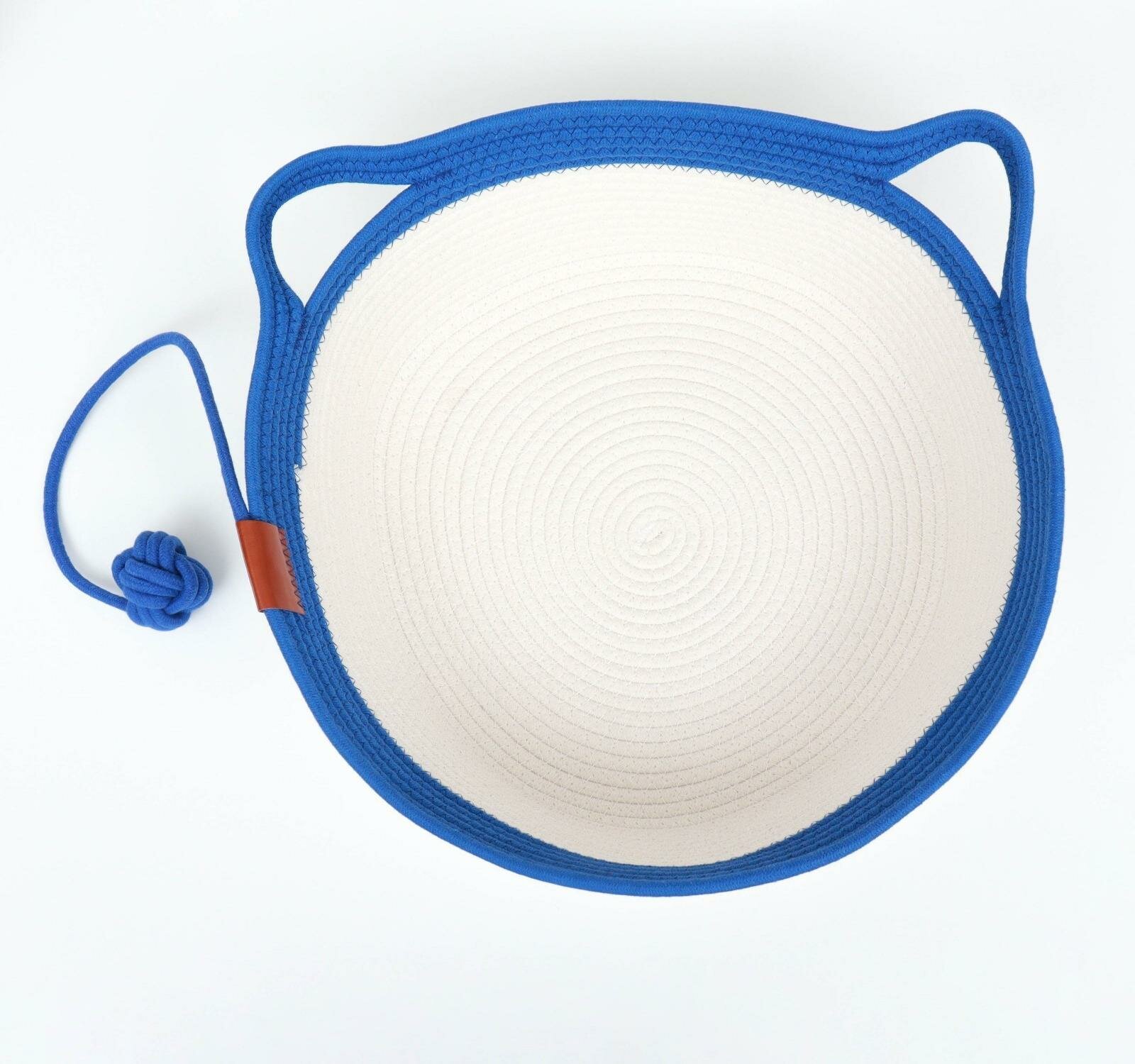 Экологичный лежак для животных (хлопок+рогоз), 45 х 37 х 16 см, вес до 25 кг, бело-синяя
