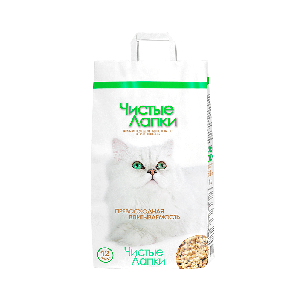 Чистые лапки – наполнитель древесный для туалета кошек (12 л)