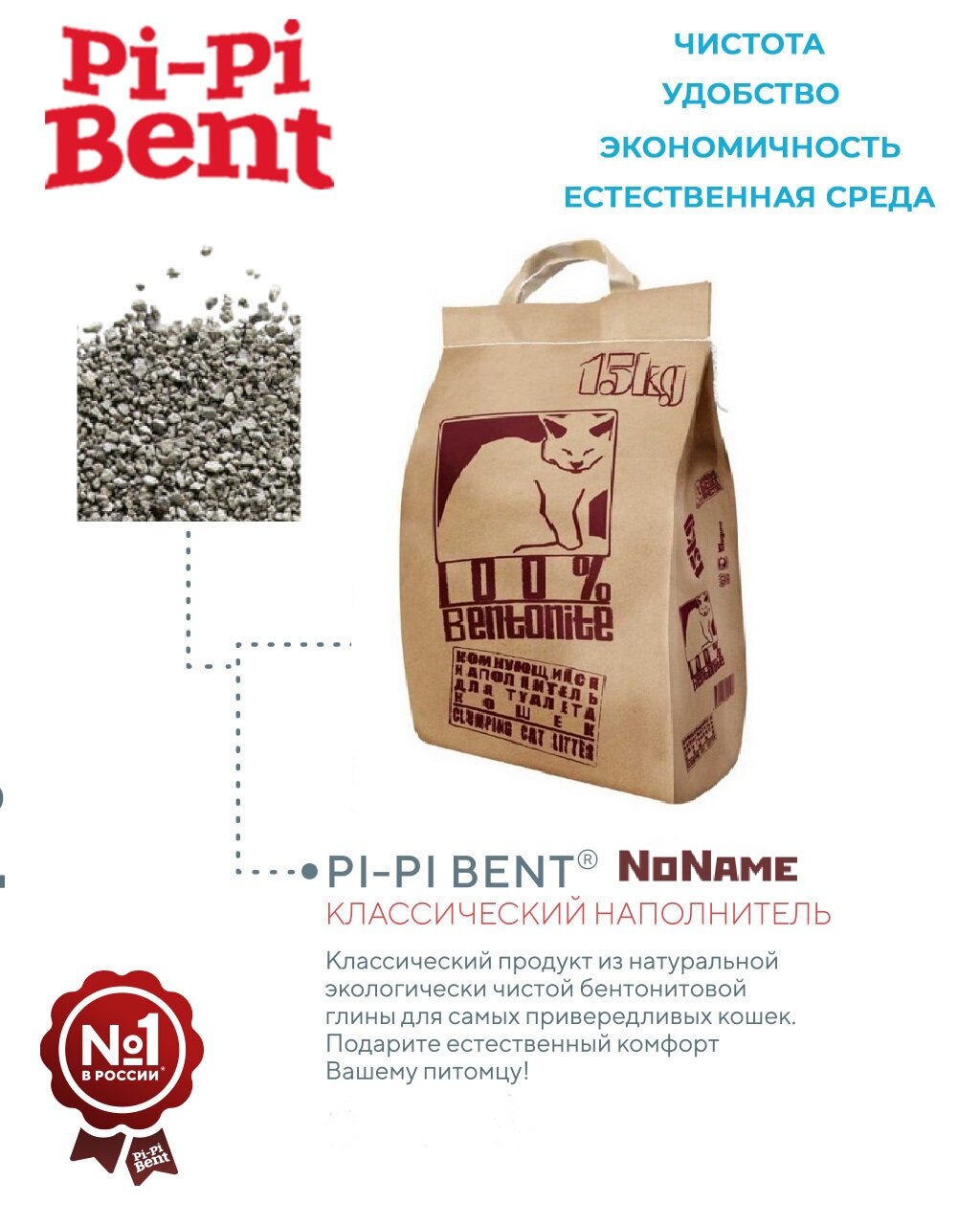 Наполнитель для кошачьих туалетов Pi-pi-bent Лидинг Bentonite 100% 15 кг