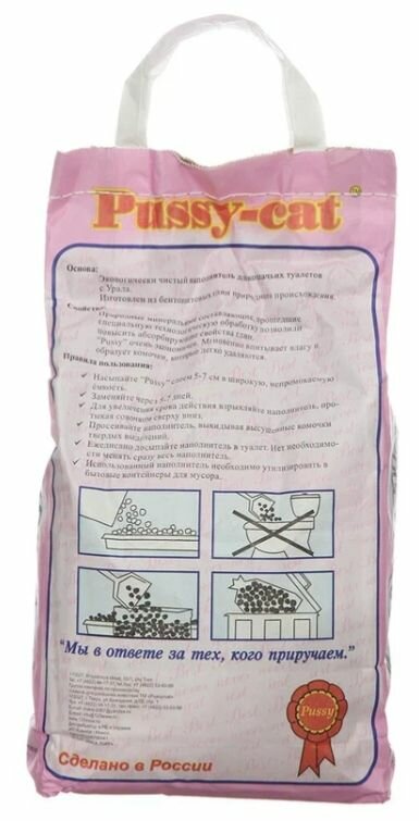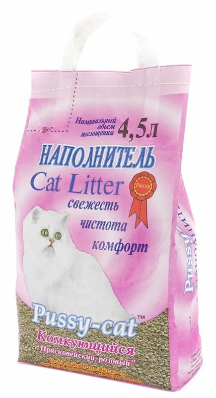 PUSSY-CAT комкующийся прасковейский розовый наполнитель комкующийся для туалета кошек (4,5 л)