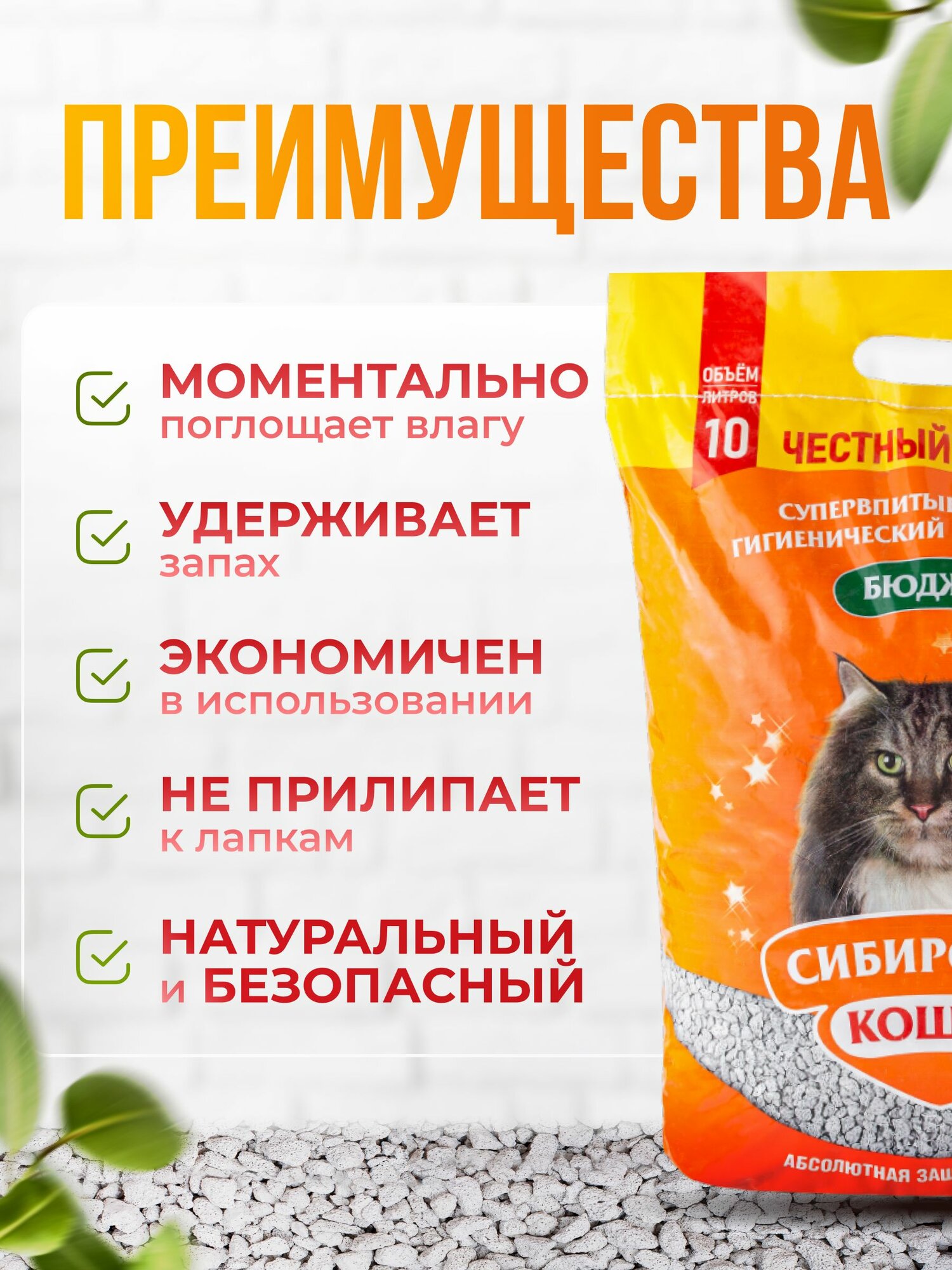 Сибирская кошка Бюджет: Впитывающий наполнитель, 10л, 4,7 кг интересное: