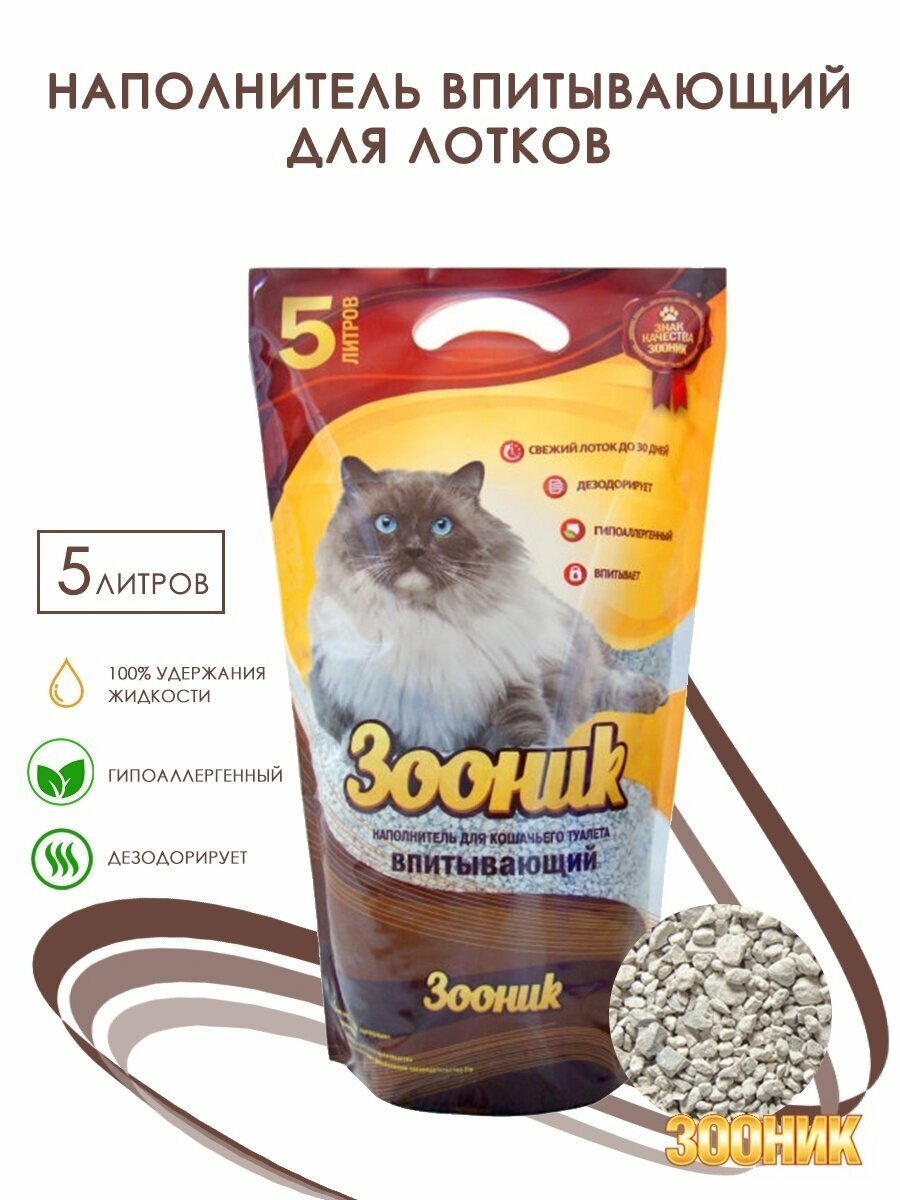 Зооник Наполнитель впитывающий д/кошек 5л интересное: