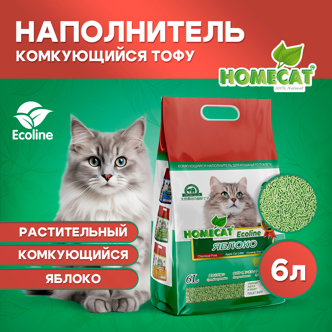 Купить HOMECAT Эколайн Яблоко 6 л комкующийся наполнитель тофу для кошачьих туалетов с ароматом яблока