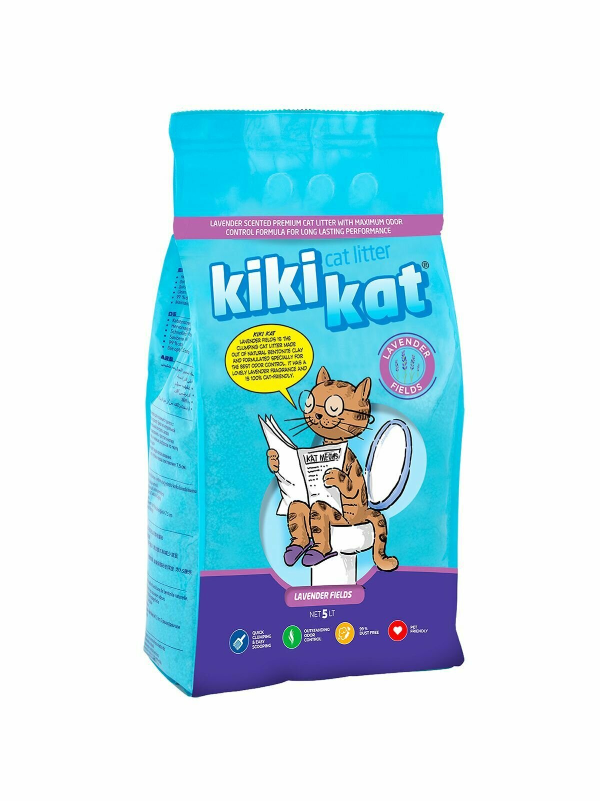 Наполнитель KikiKat "Лаванда" супер-белый для кошачьего туалета, комкующийся, бентонитовый, 5 л