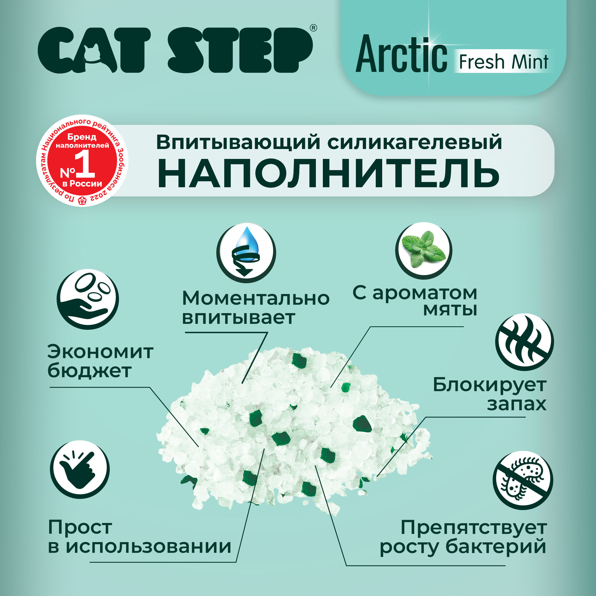 Наполнитель CAT STEP CRYSTAL FRESH MINT впитывающий силикагелевый с мятой (3,8 л/1,67 кг)