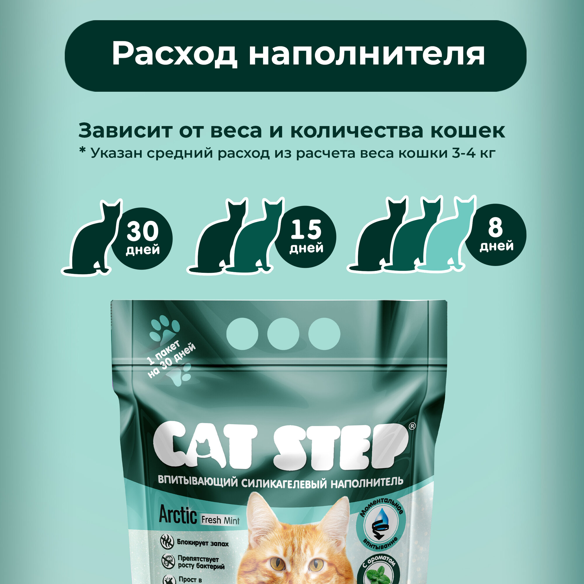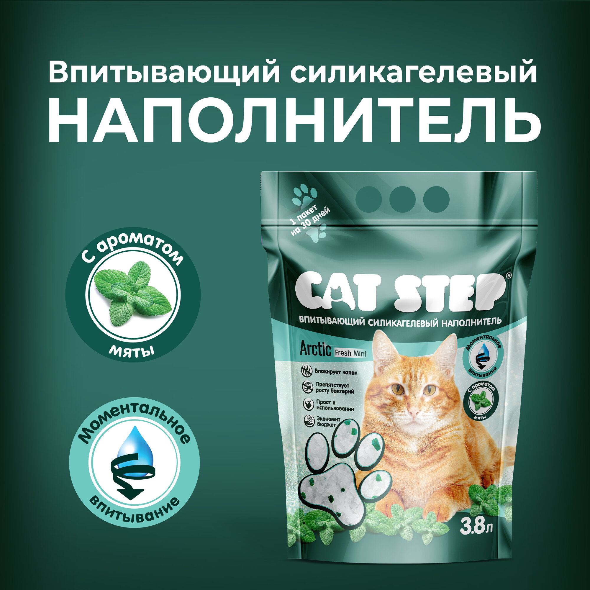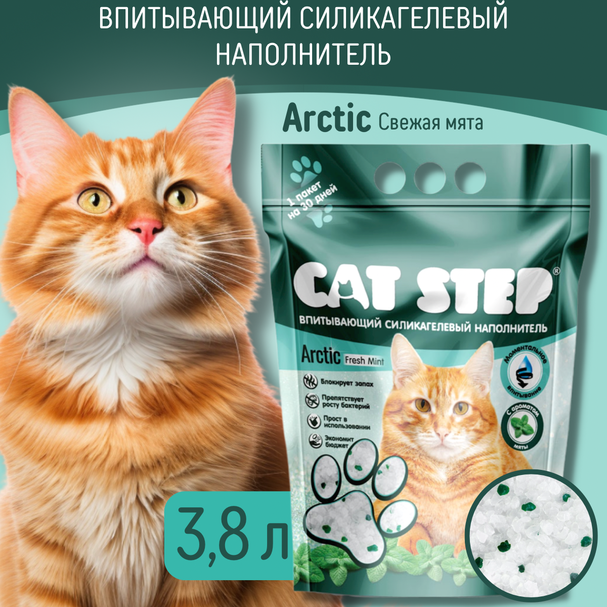 Впитывающий наполнитель Cat Step Crystal Fresh Mint, 3.8л, 1 шт. интересное: