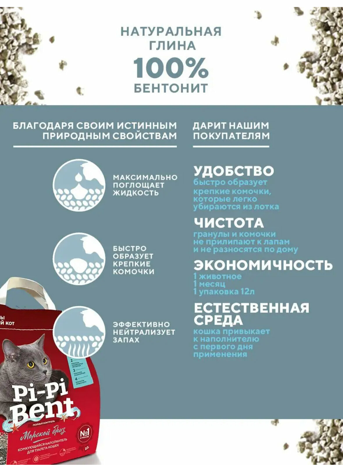 Pi-Pi-Bent - Комкующийся наполнитель "Морской бриз" (пакет) - 5 кг интересное: