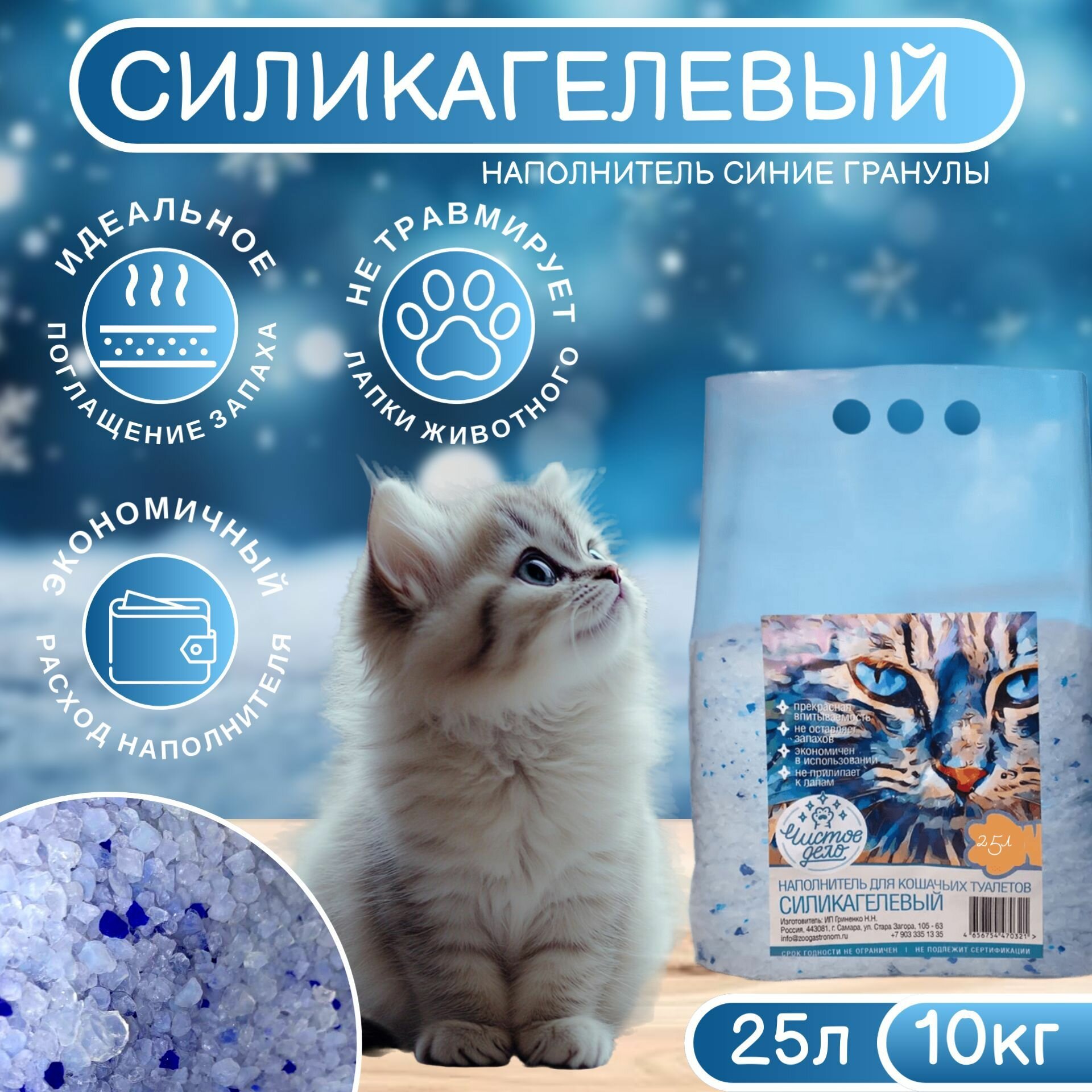 СохранитьНаполнитель для кошачьего туалета Чистое дело, силикагелевый, 25л (синие гранулы) 10 кг интересное: