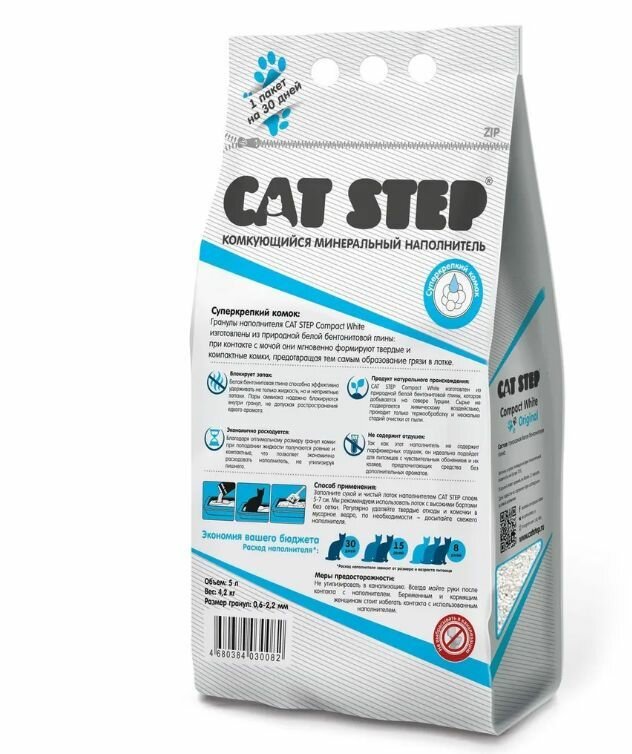 Наполнитель Cat Step комкующийся минеральный Compact White Original, 5л