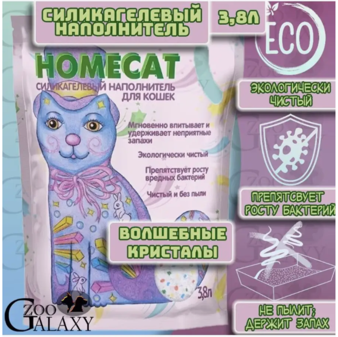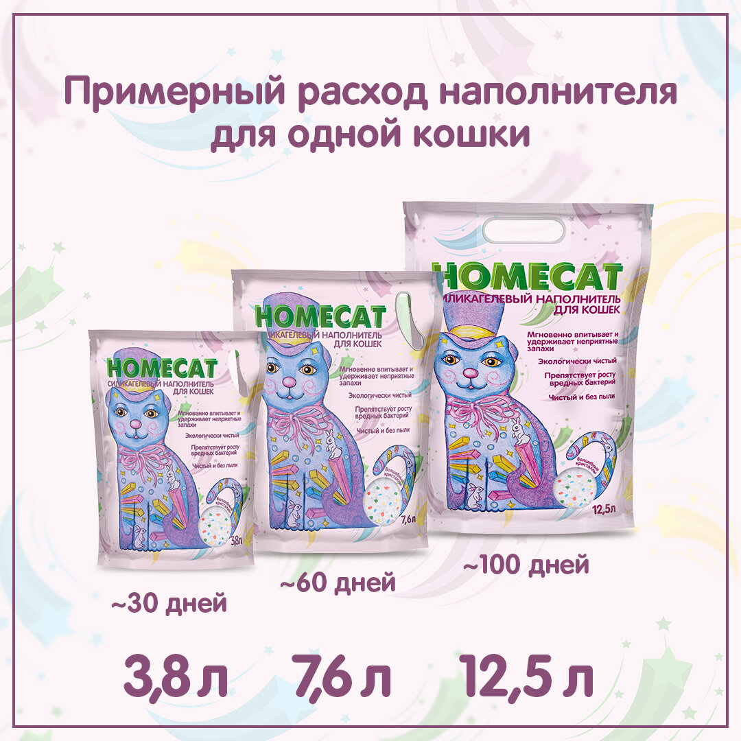 Купить HOMECAT волшебные кристаллы наполнитель силикагелевый для туалета кошек (3,8 л)