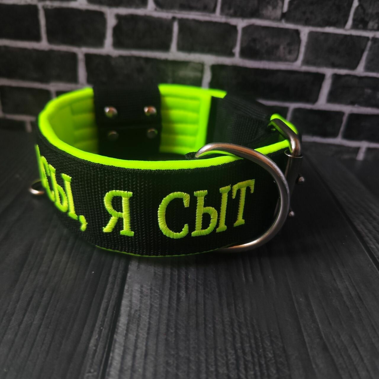 Купить Широкий ошейник с вышивкой "Не ссы я сыт" от DOGTON, с принтом, с рисунком для собак крупных и средних пород. Ширина 5.5 см. Обхват шеи 35-47 см.