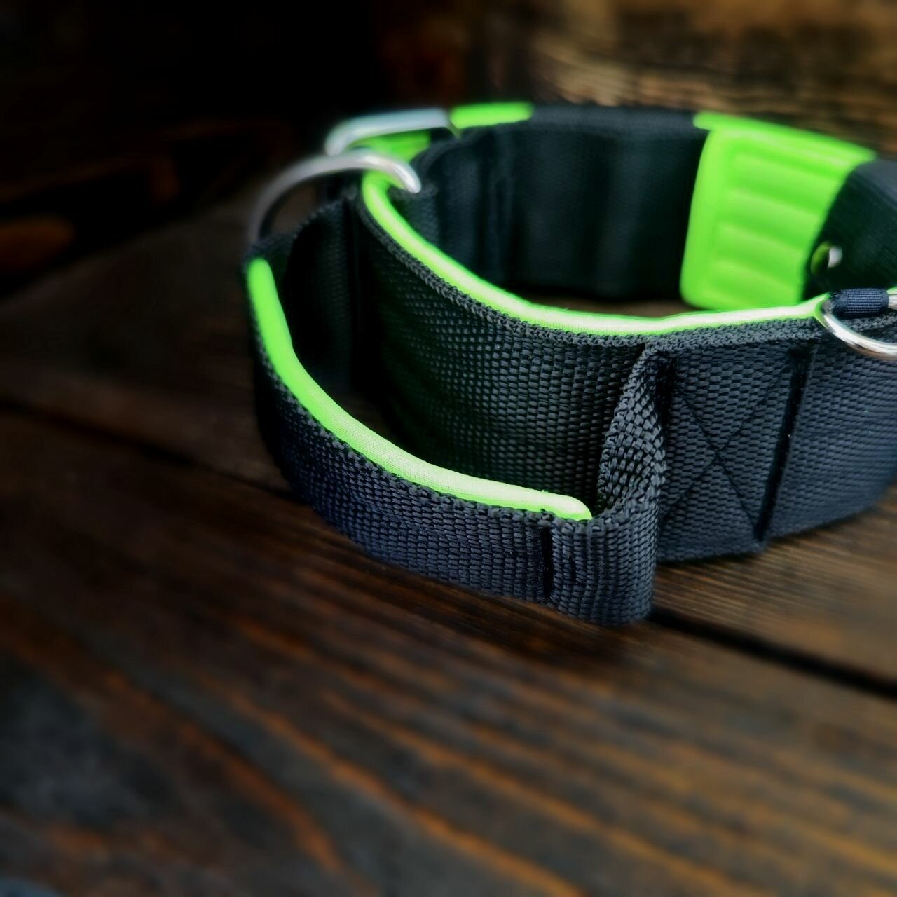 Купить Ошейник для собак с ручкой. Ширина 5.5 см. Сварная фурнитура. Обхват 43-57 см. Цвет черный с неоновым
