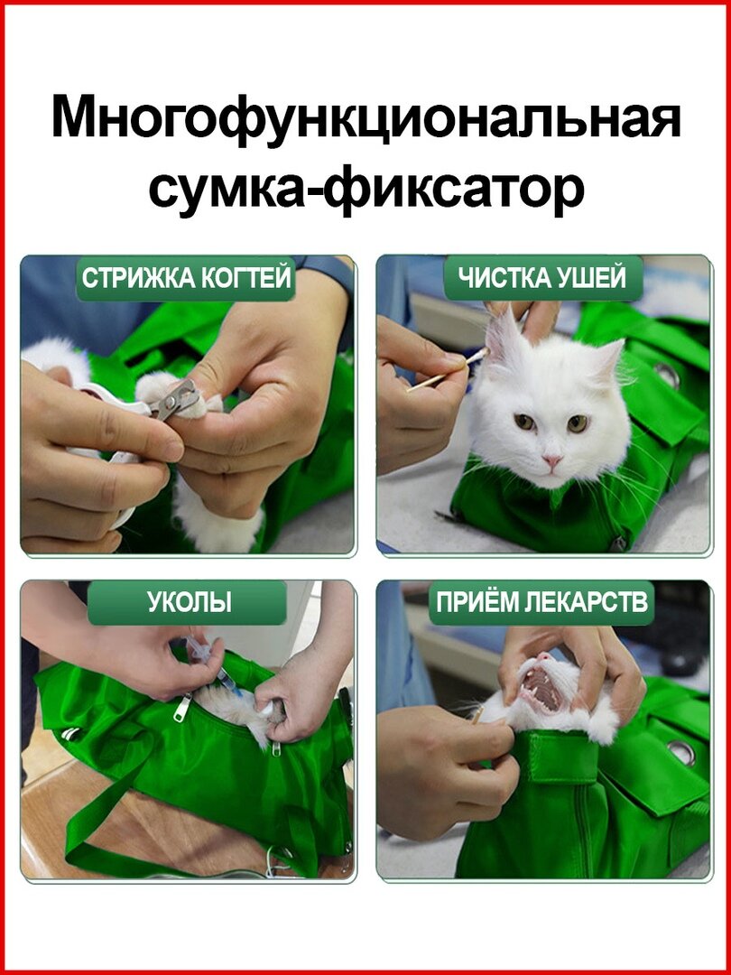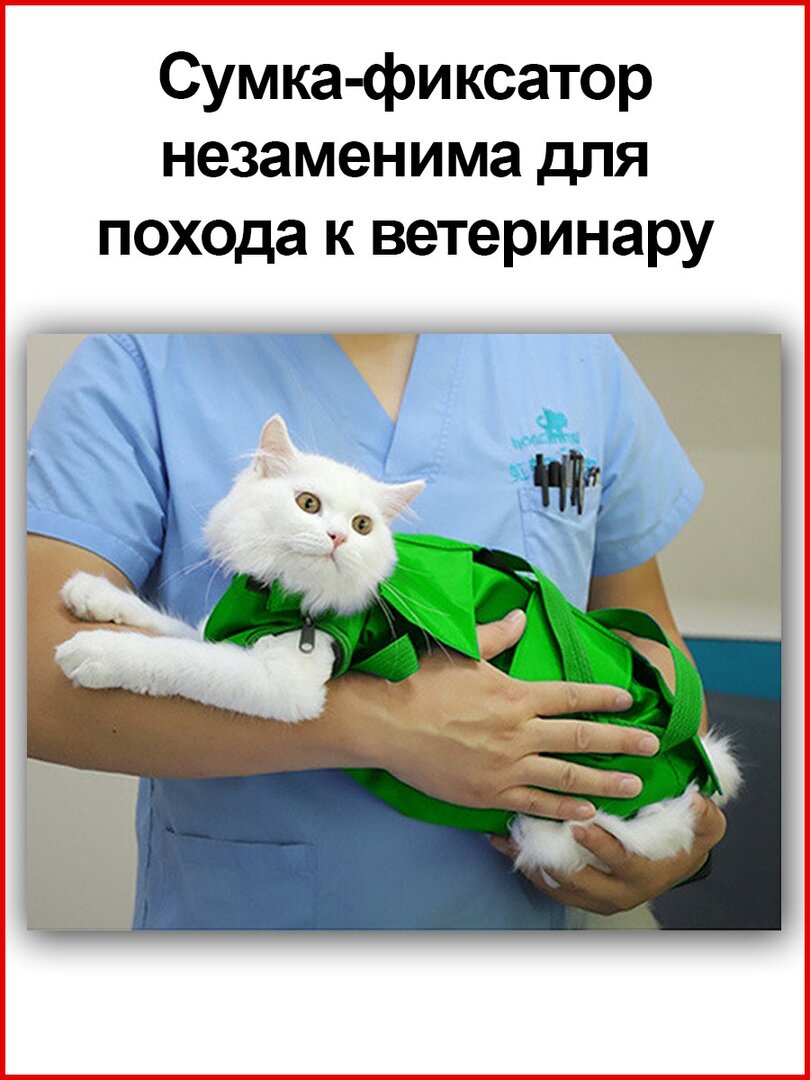 | Дополнительная информация | Сумка для фиксации и обследования животных создана для того, чтобы ограничить подвижность питомца во время осмотра у ветеринара, проведения инъекций и других процедур - и при этом избежать царапин, укусов и травм питомца. Подходит для кошек и собак мелких пород. |