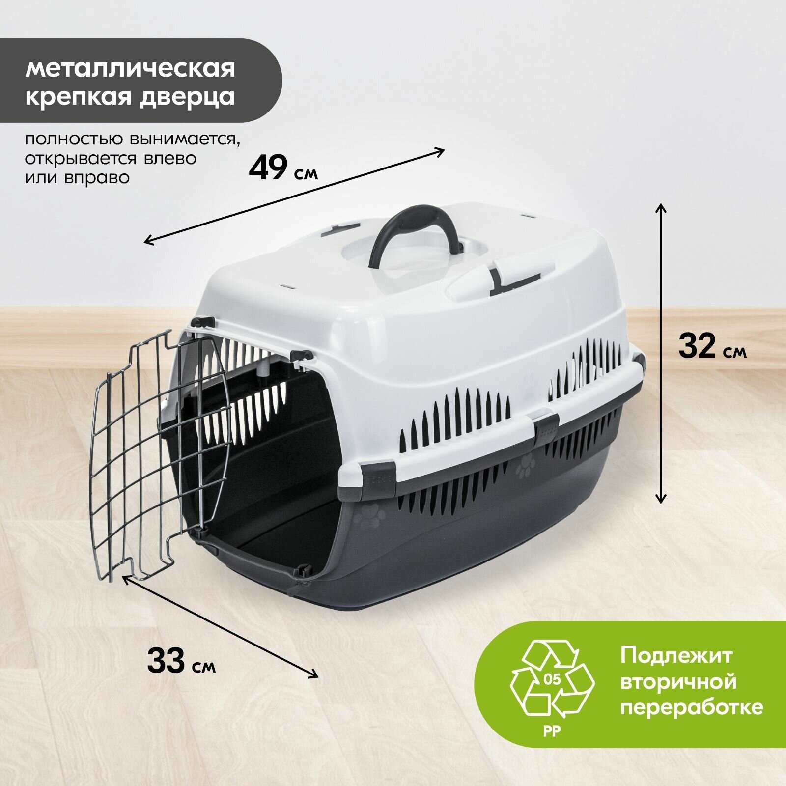 Пижон Переноска для животных до 12 кг "Пижон" 49х33х32см, металлическая дверь, бело-серая
