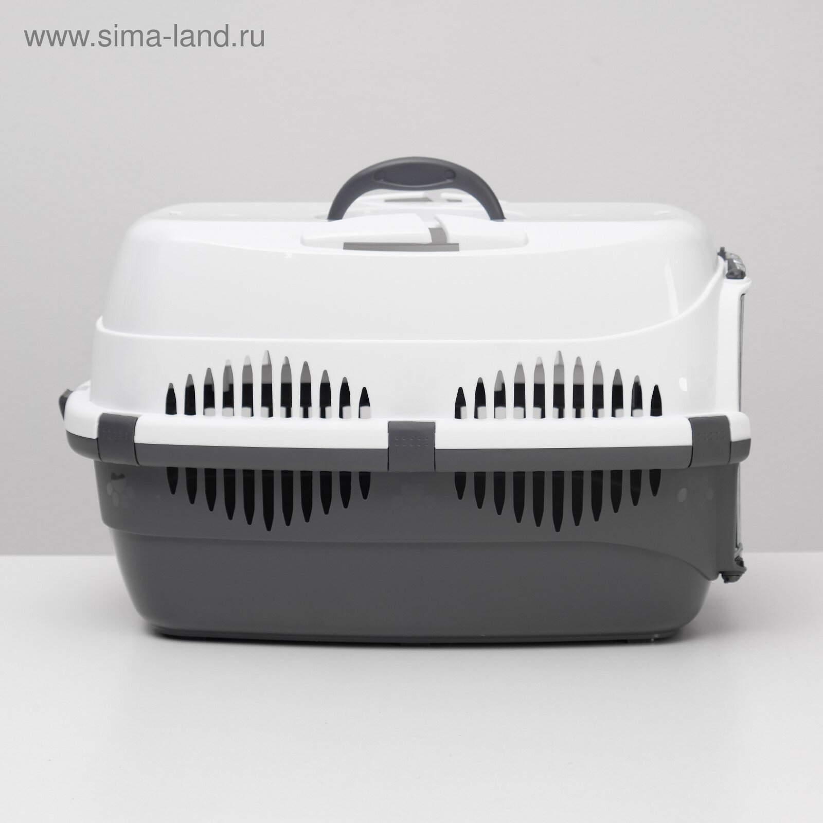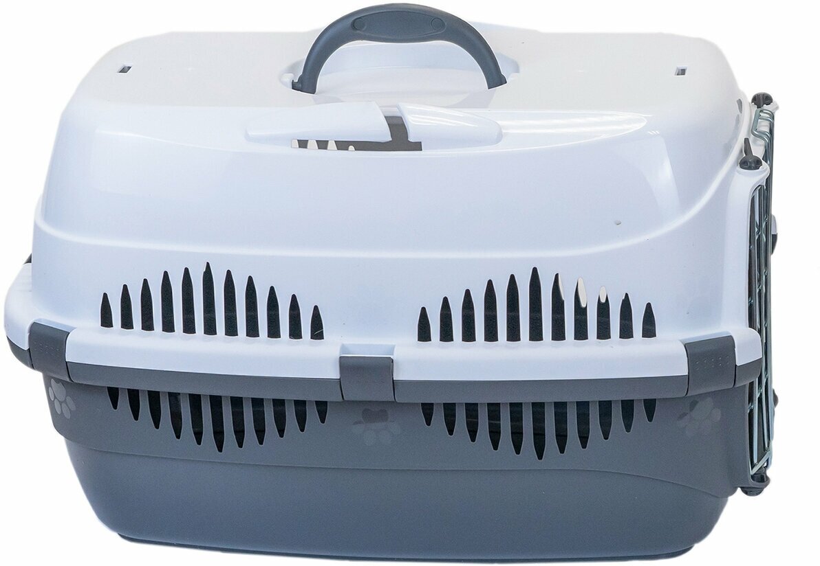 Купить Переноска 49 х 33 х 32см пластиковая PetTails с металлической дверцей (до 12кг) (сер.низ/бел.верх)