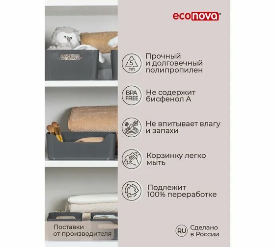 Корзина для хранения econova Scandi, 10 л, 34x24x14 см, цвет микс