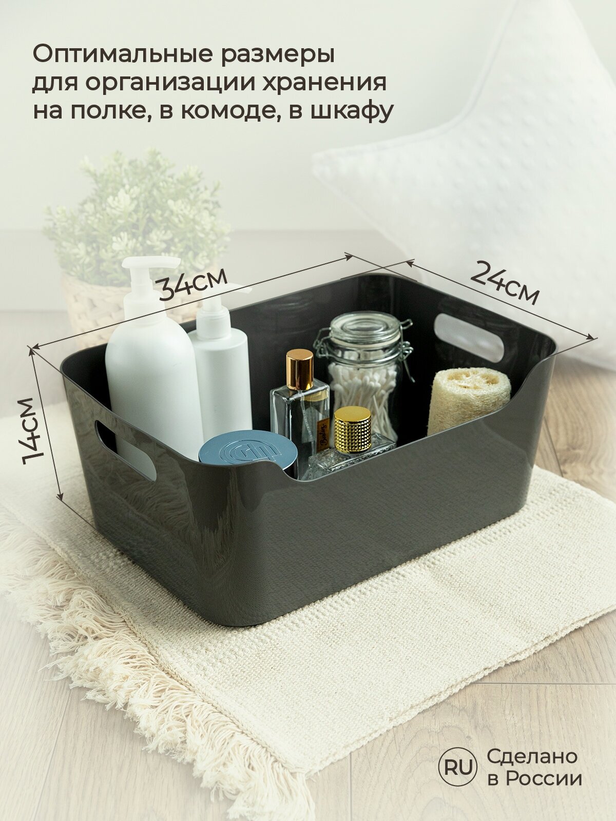 Корзинка универсальная для хранения "SCANDI", серый, 34*24*14см, 10л