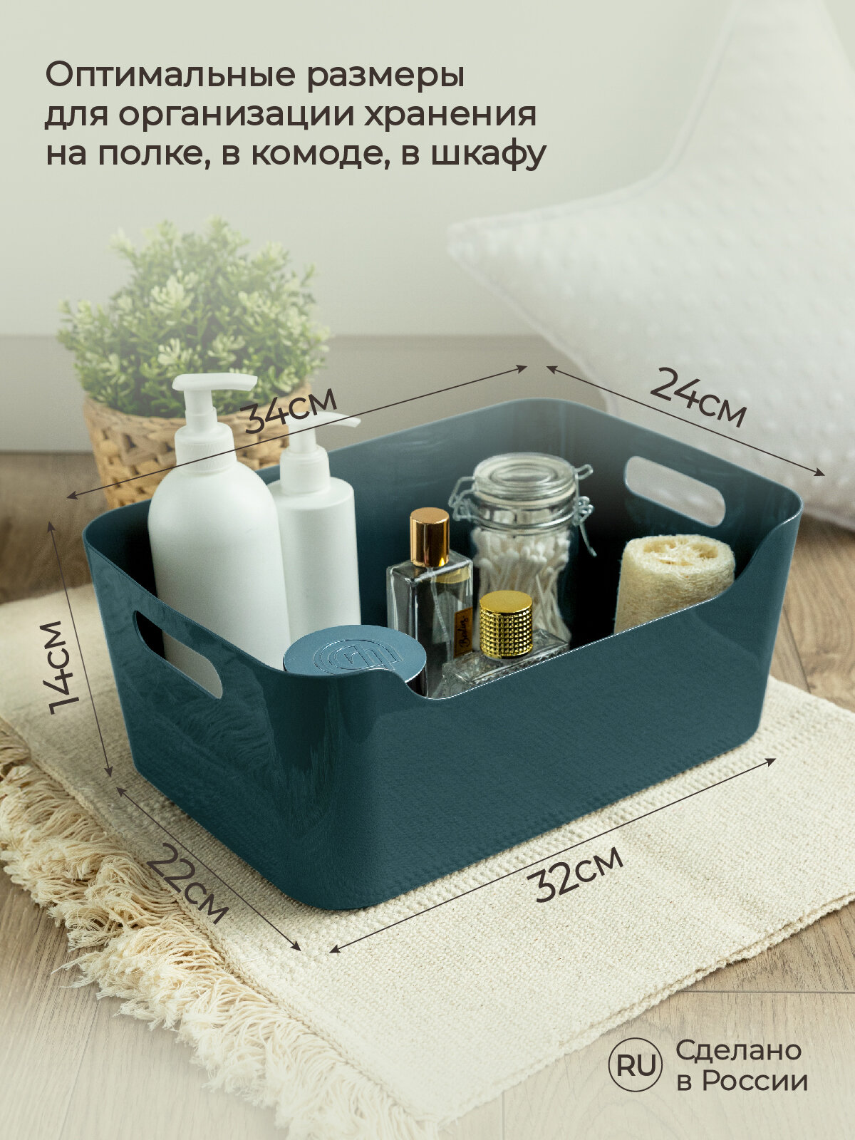 Коробка для хранения вещей с крышкой, короб для хранения стеллажный, корзина, ящик, 28*30*16 см, VALIANT BOTANIC