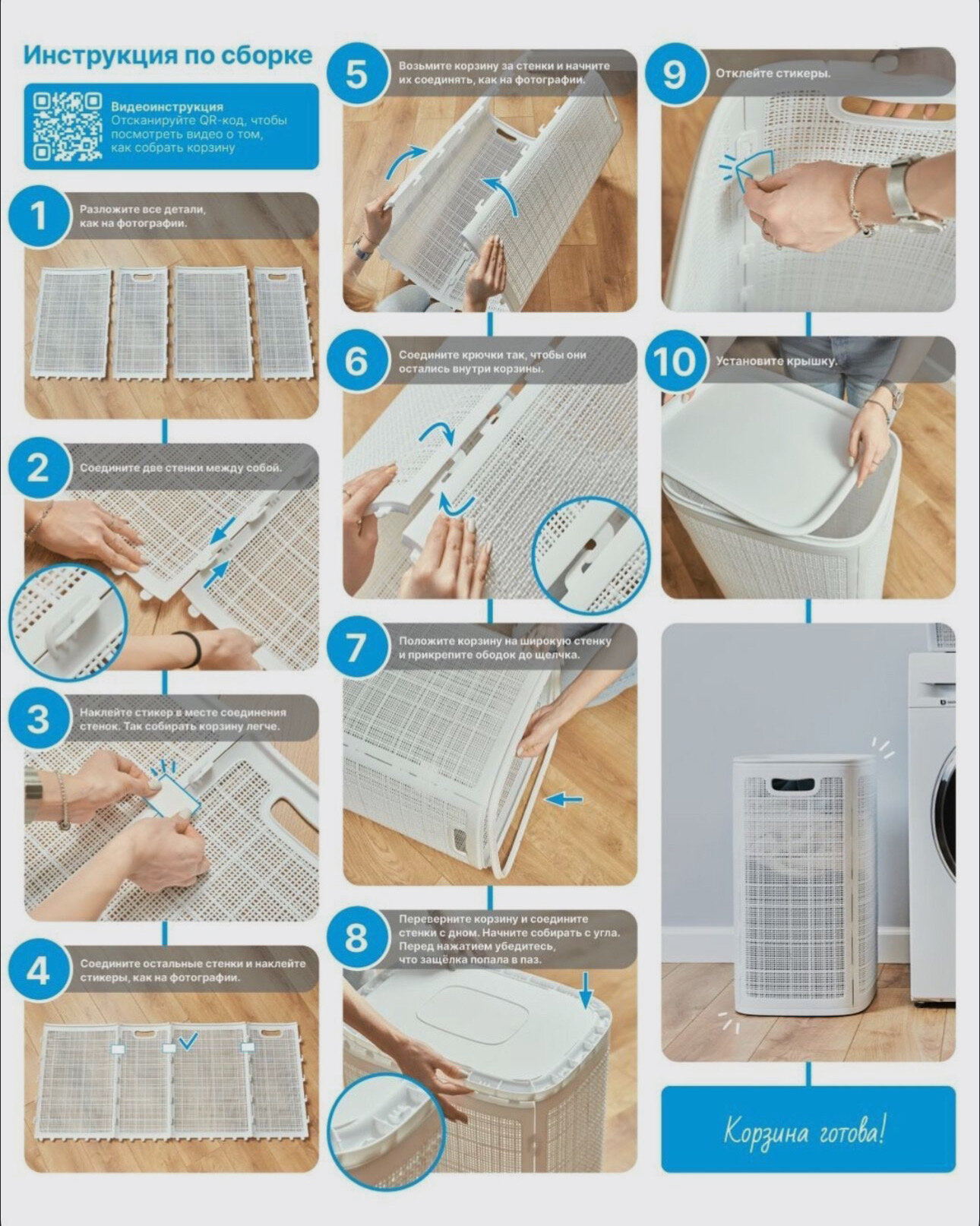 | Особенности | плетеная / ручки для переноски / с крышкой / складной / узкая |
